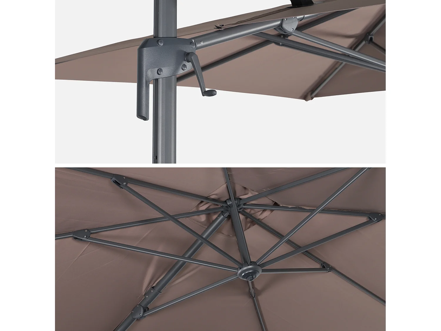 Parasol déporté rectangulaire 3x4m – Antibes – taupe – parasol déporté. inclinable. rabattable et rotatif à 360°