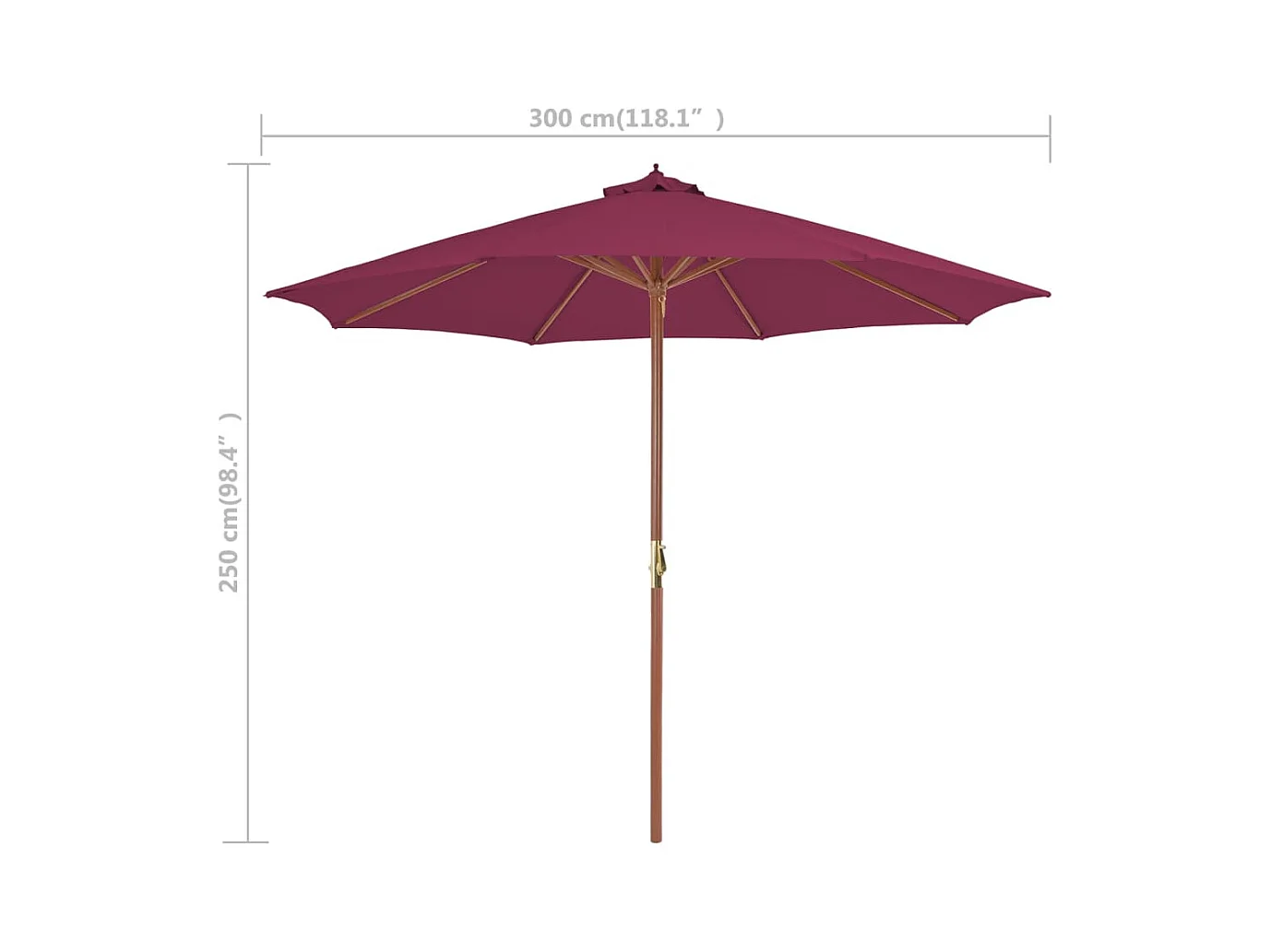 Parasol d'extérieur | Parasol de jardin avec mât en bois 300 cm rouge bordeaux