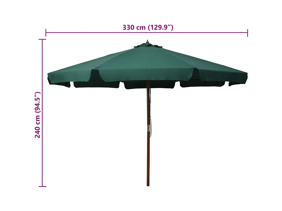 Parasol d'extérieur | Parasol de jardin avec mât en bois 330 cm Vert