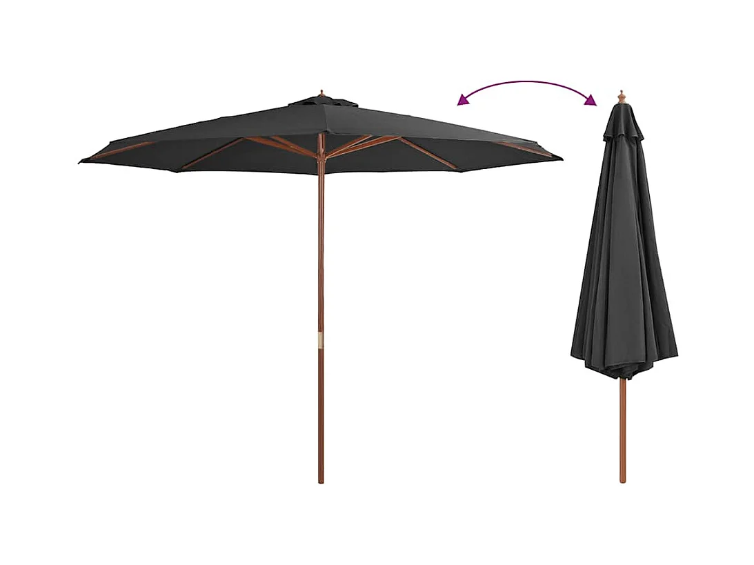 Parasol d'extérieur | Parasol de jardin avec mât en bois 300 cm anthracite