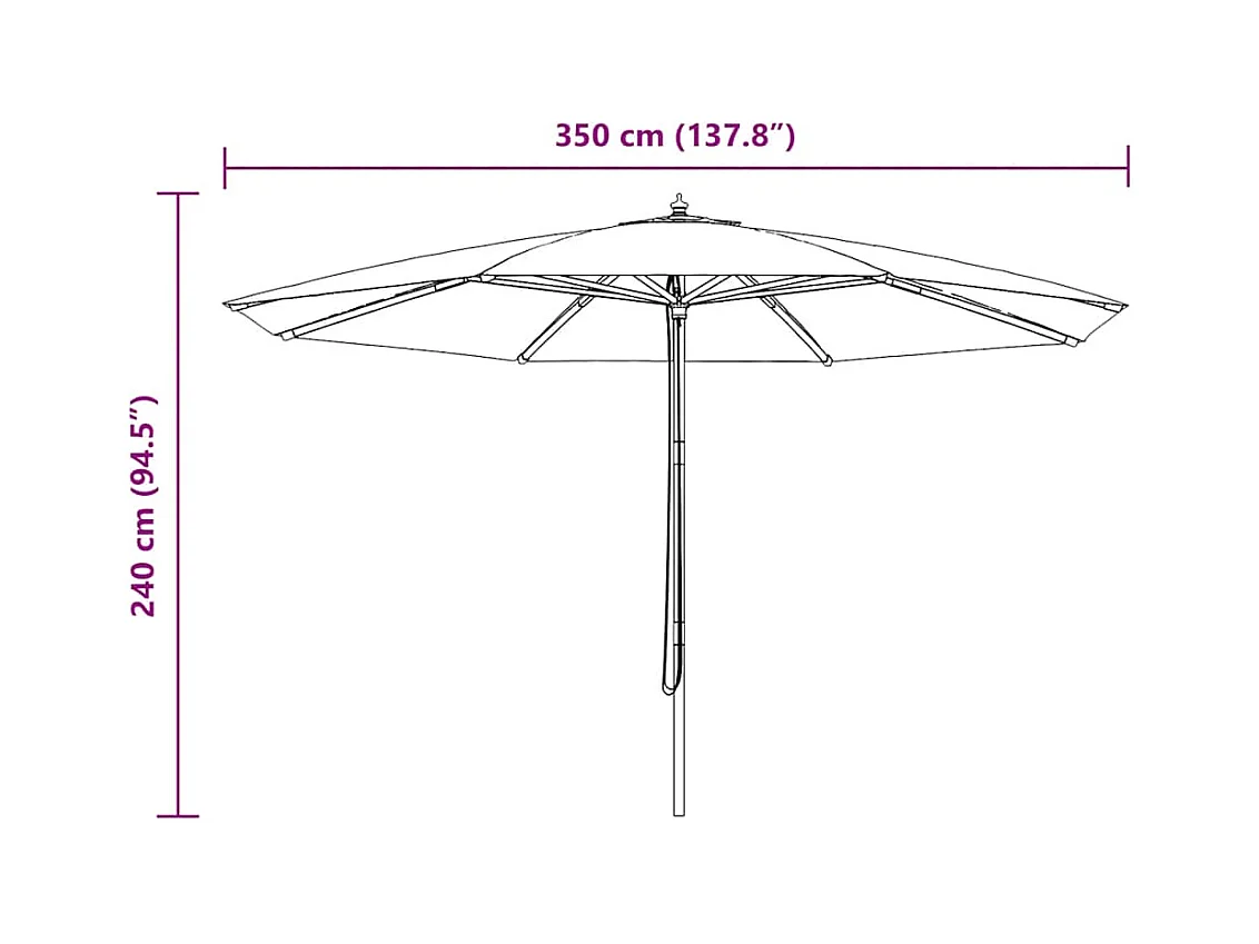 Parasol d'extérieur | Parasol de jardin avec mât en bois 350 cm Anthracite