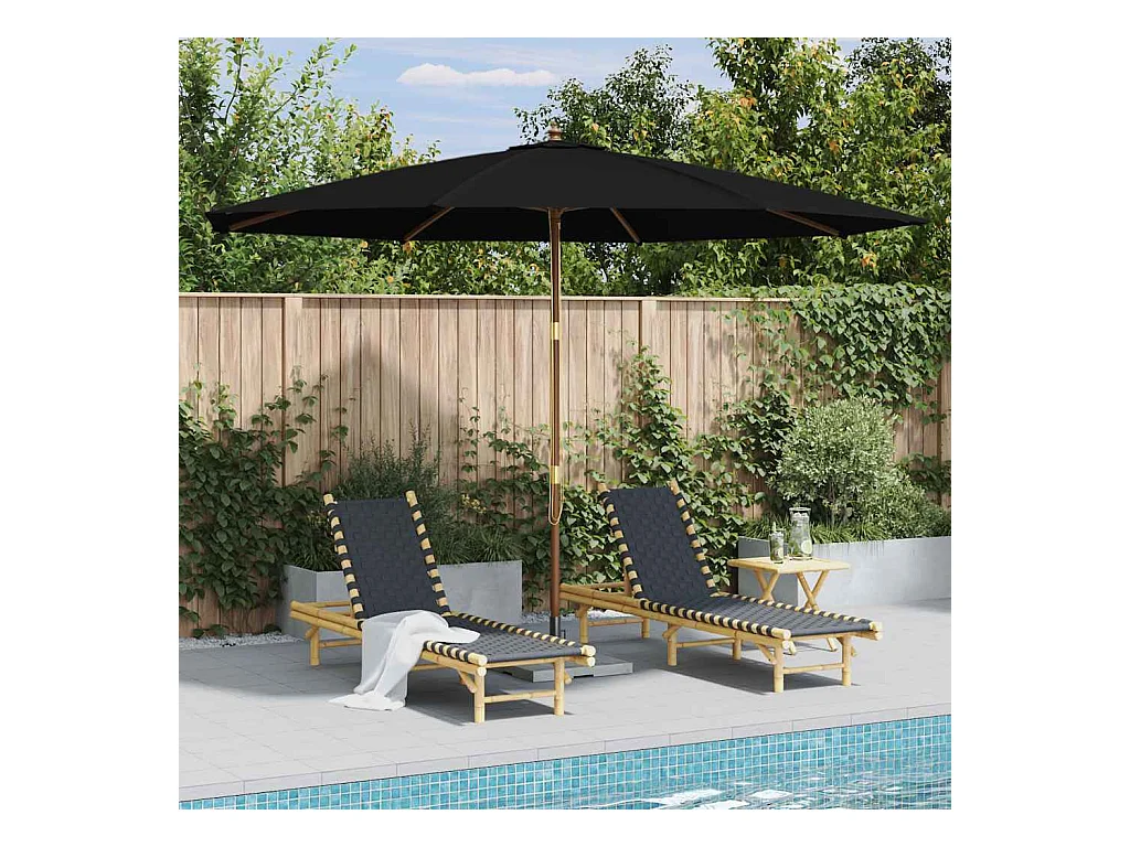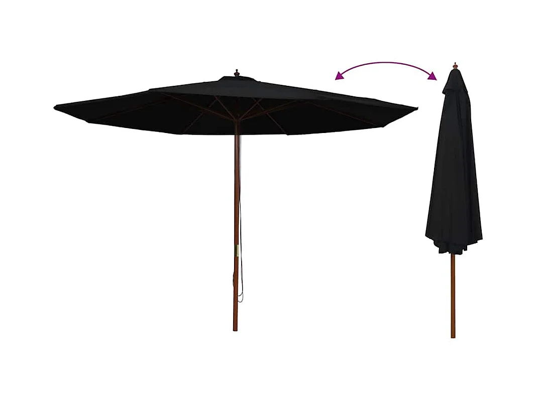 Parasol d'extérieur | Parasol de jardin avec mât en bois 350 cm Noir