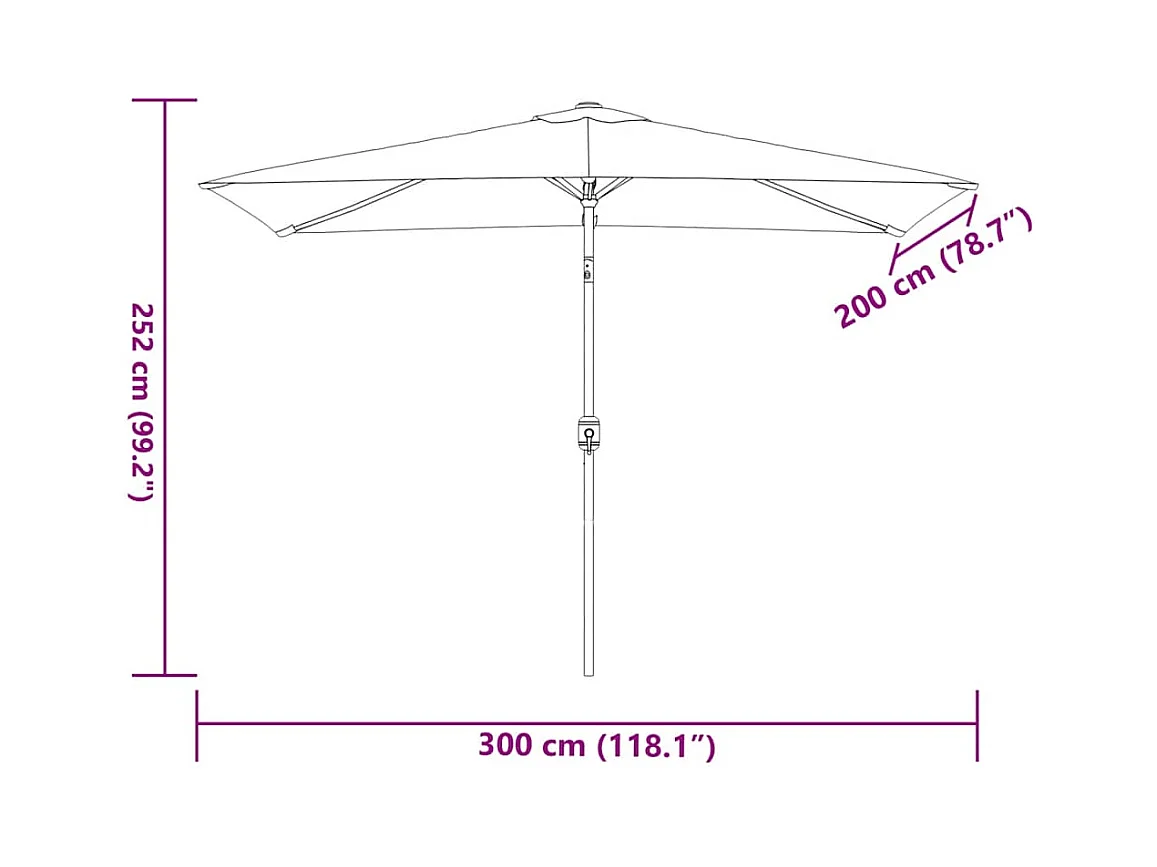 Parasol d'extérieur | Parasol de jardin avec poteau en métal 300x200 cm Azuré