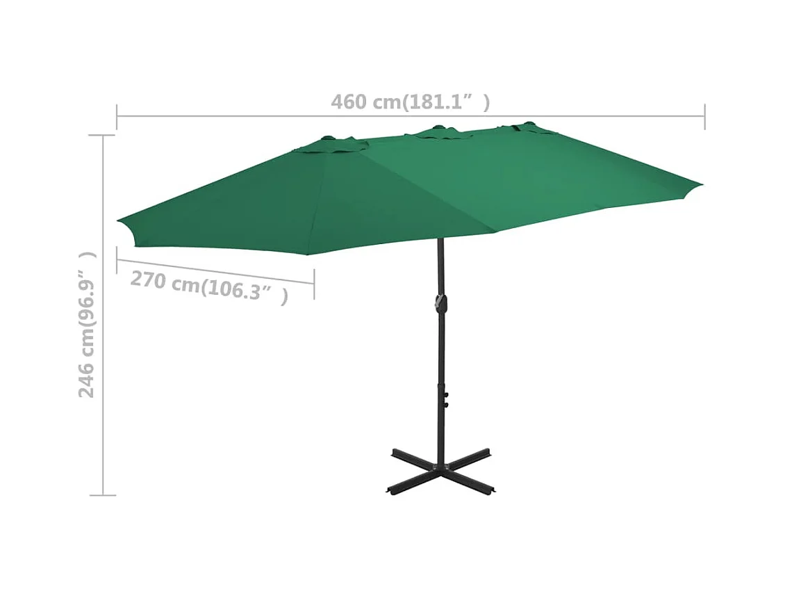 Parasol d'extérieur-Parasol de jardin et mât en aluminium 460x270 cm vert
