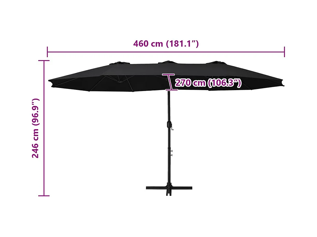 Parasol d'extérieur-Parasol de jardin et poteau en aluminium 460x270 cm Noir