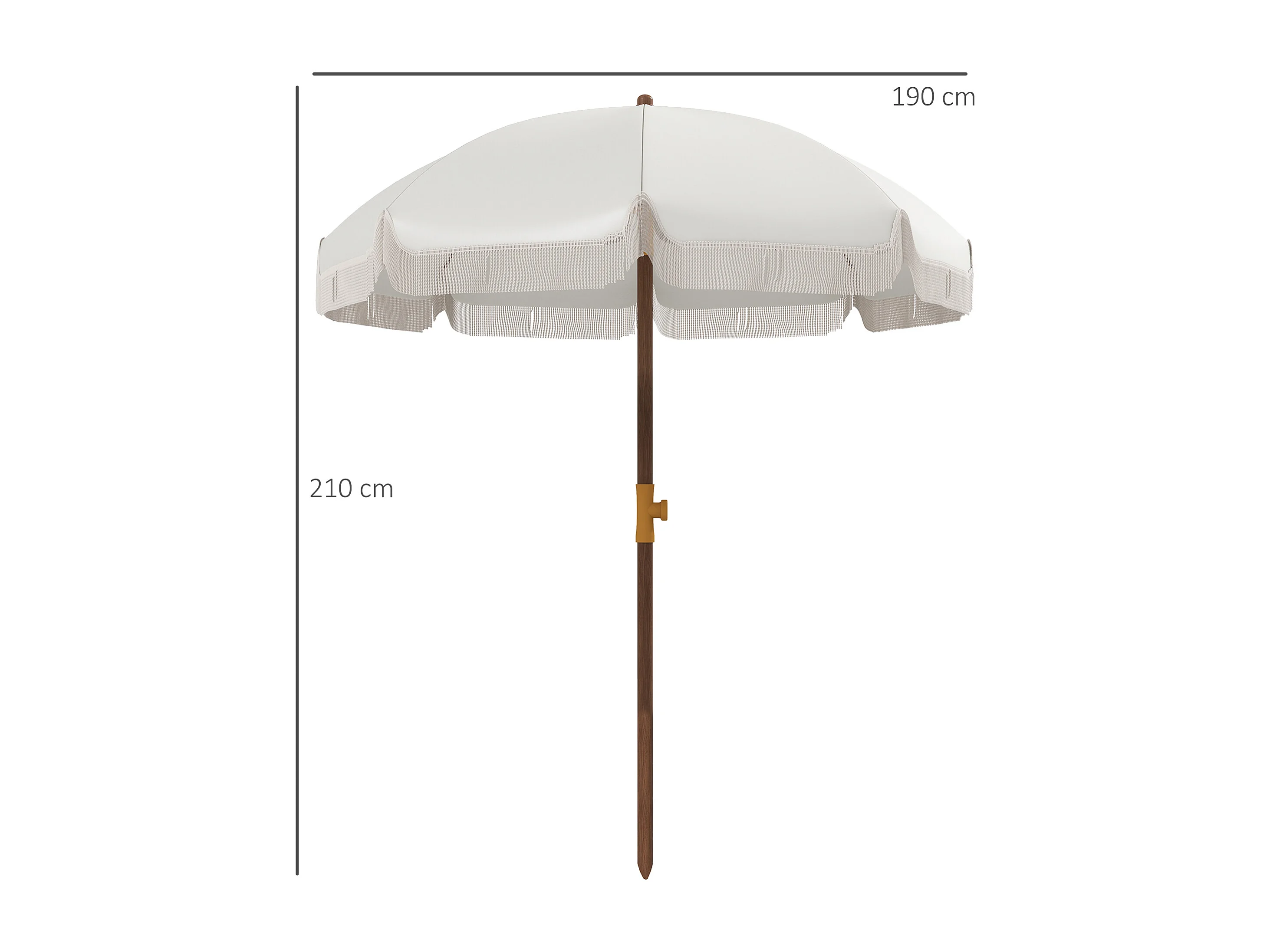 Parasol droit de plage jardin style bohème à franges UV40+ crème