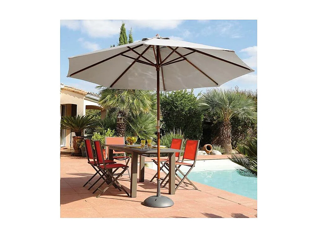 Parasol droit et inclinable en bois diamètre 3m écru Cancun