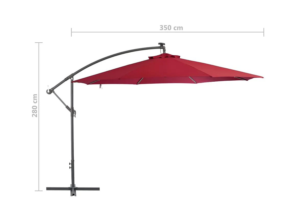 Parasol en porte-à-faux avec mât en aluminium 350cm Bordeaux