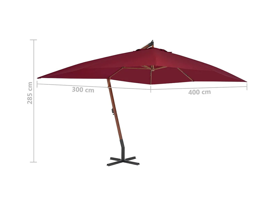 Parasol en porte-à-faux avec mât en bois 400x300 Bordeaux