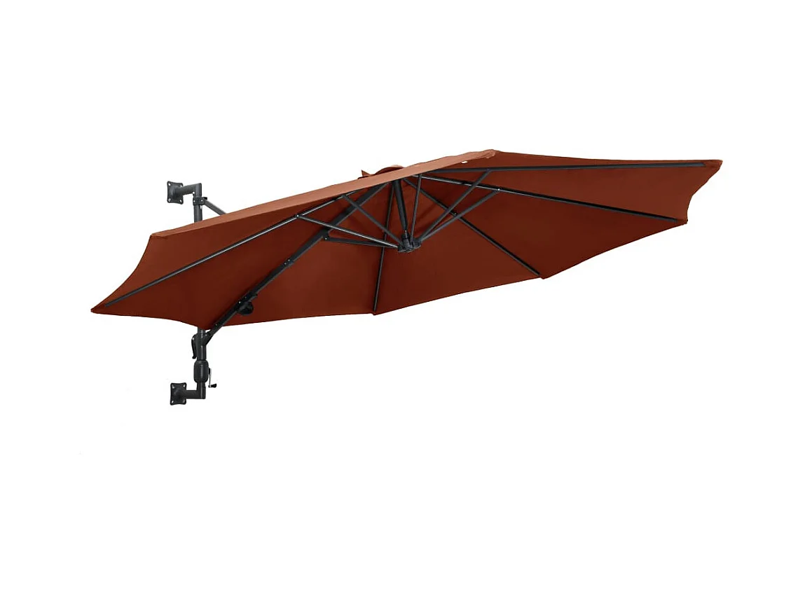 Parasol mural avec mât métallique et LED 300cm Taupe