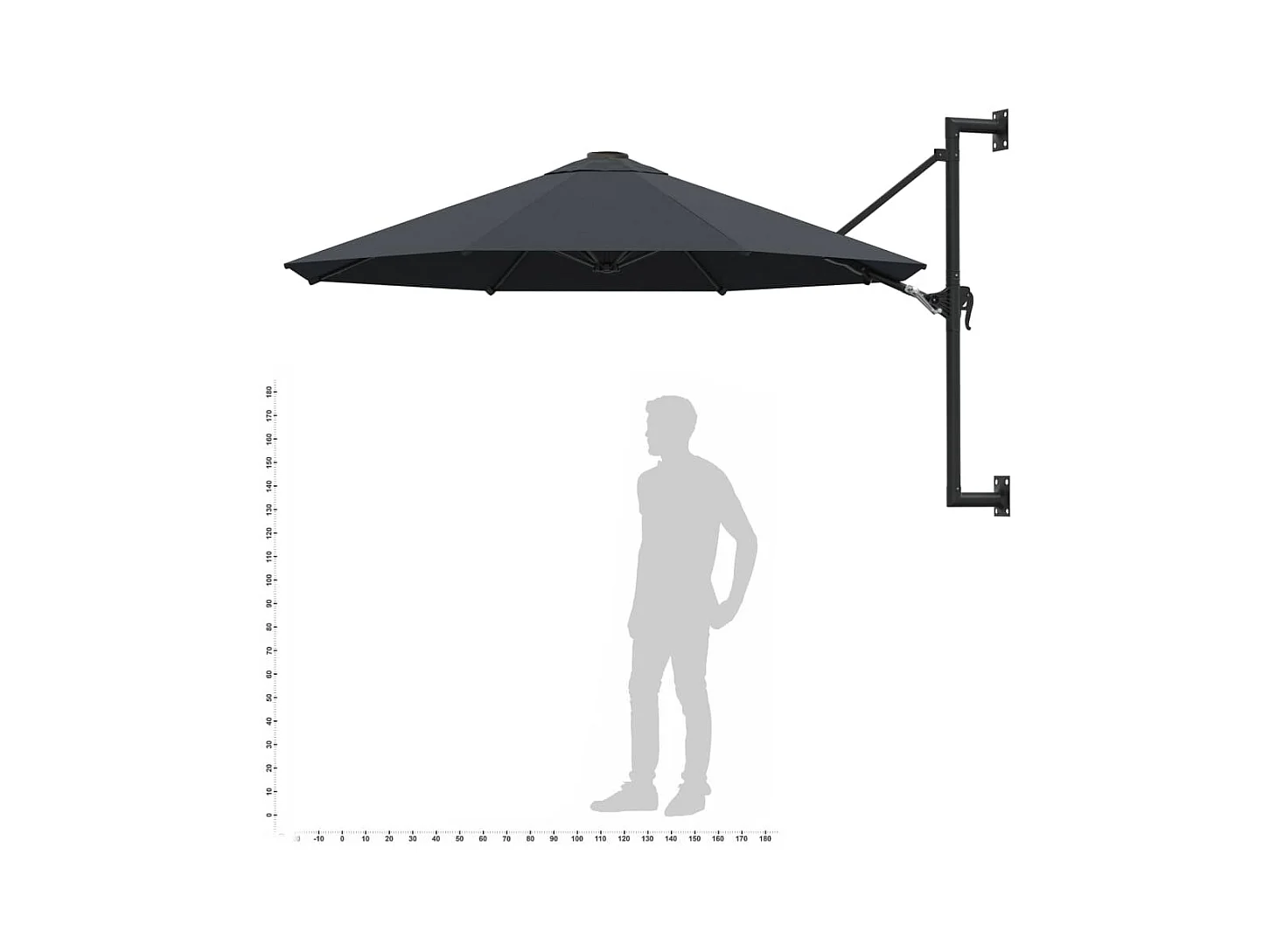 Parasol mural avec mât métallique 300cm Anthracite