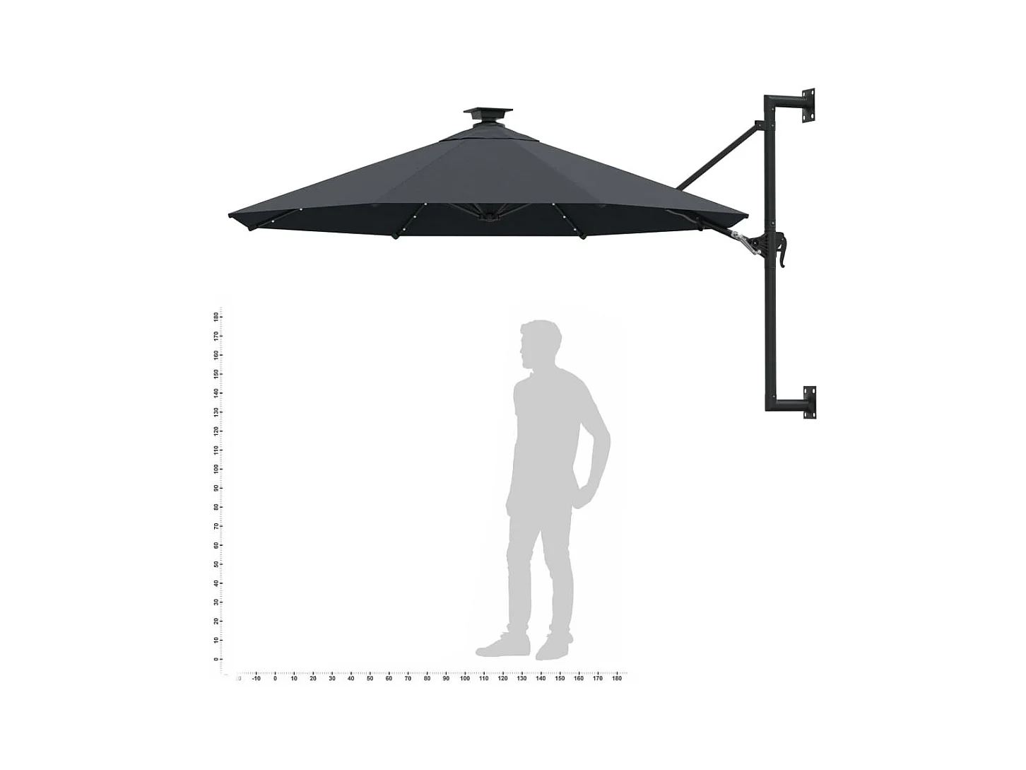Parasol mural | Parasol flottant de jardin avec LED 300 cm anthracite