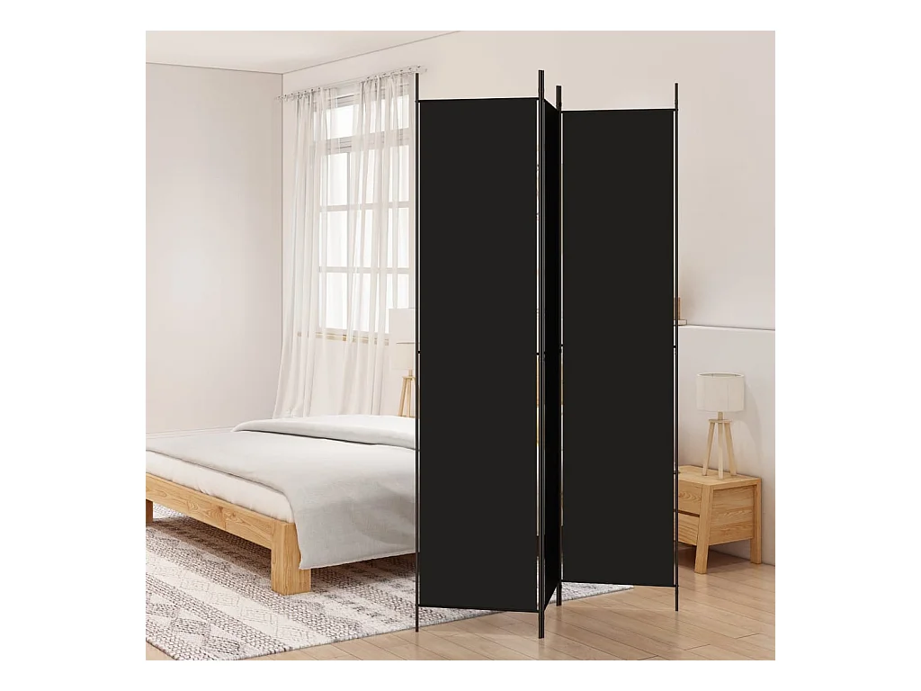 Paravent 3 panneaux Noir 150x220 cm Tissu WVGQ6415