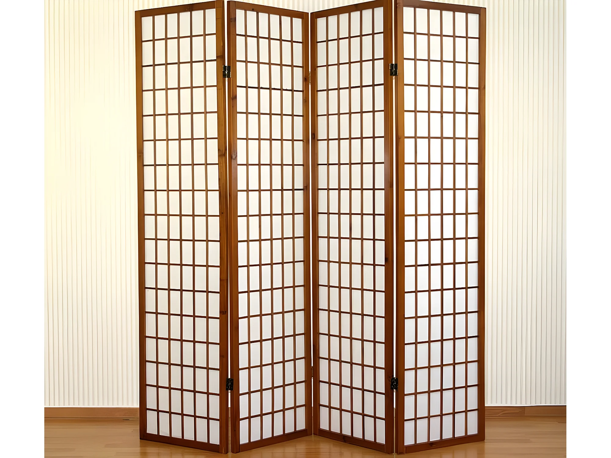 Paravent 4 panneaux japonais bois marron 175 x 2.2 x 175 cm PAR06014