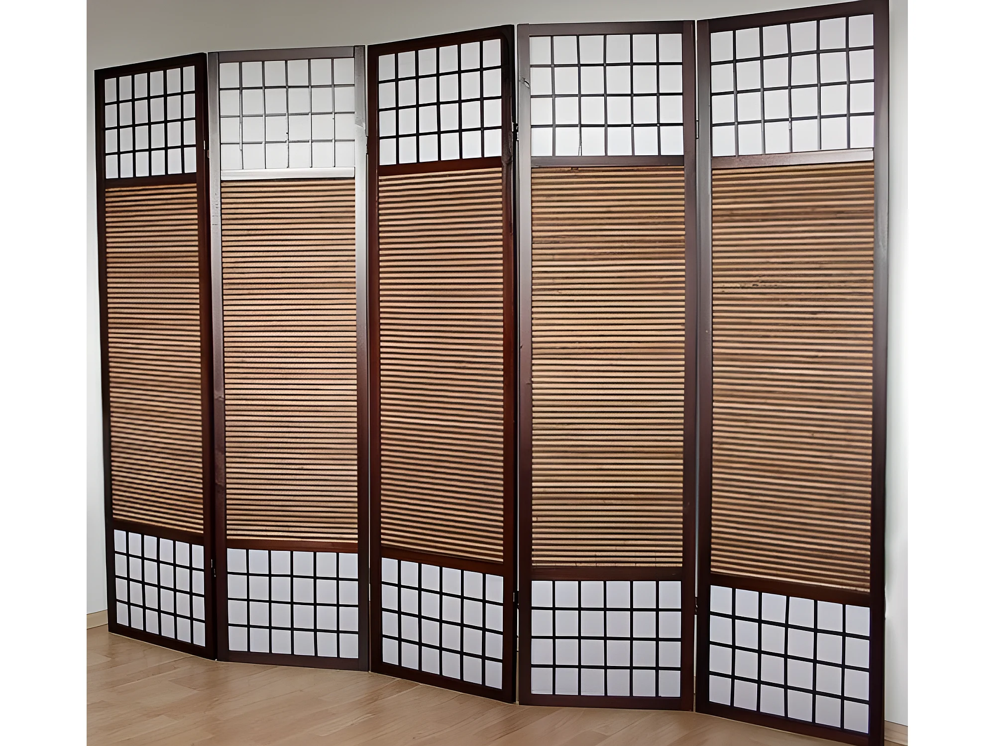 Paravent 5 panneaux marron bois marron 220 x 2.2 x 175 cm PAR06011