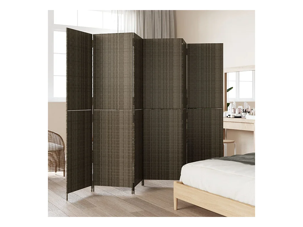 Paravent 6 panneaux gris résine tressée WVGQ5127