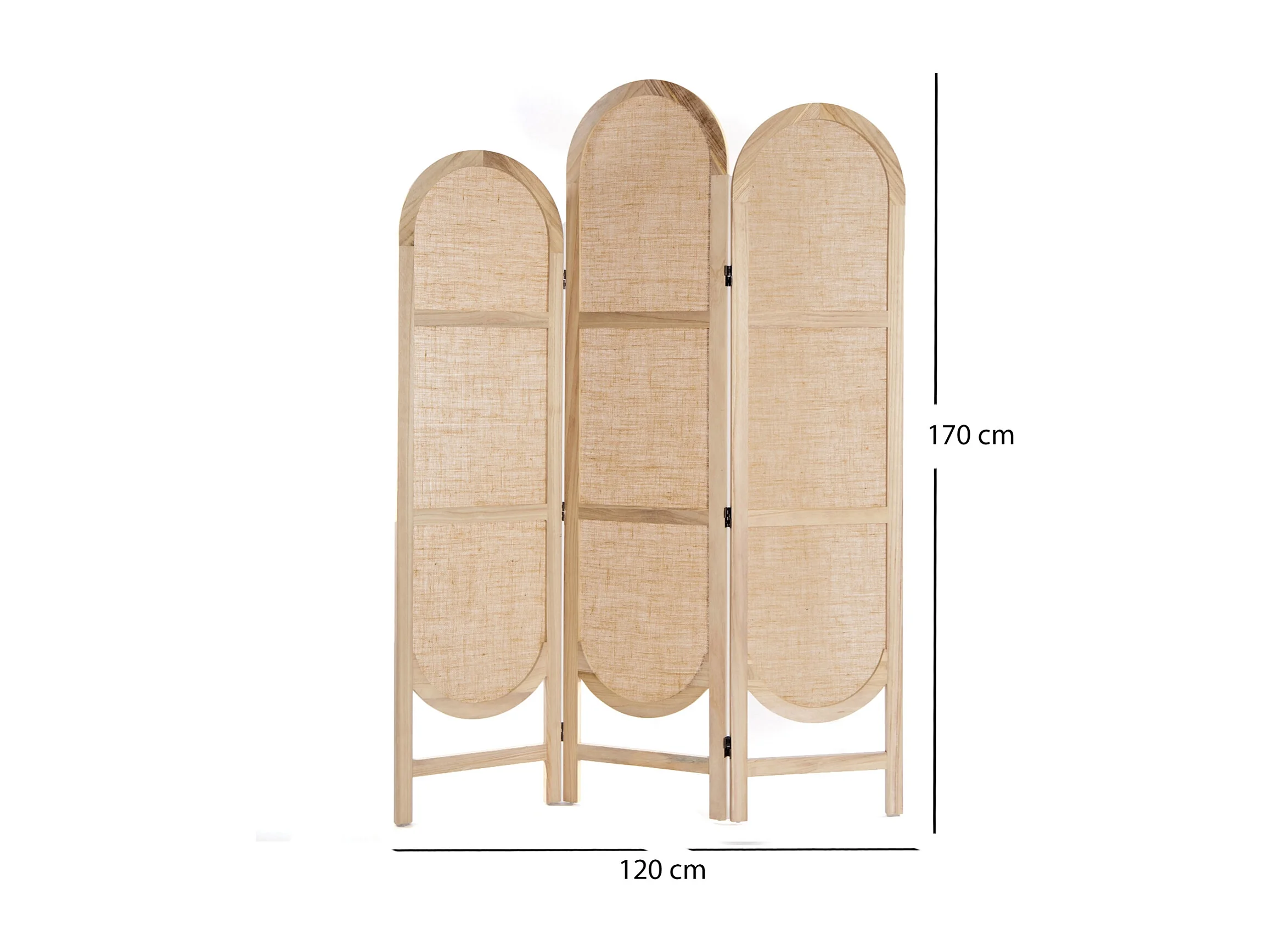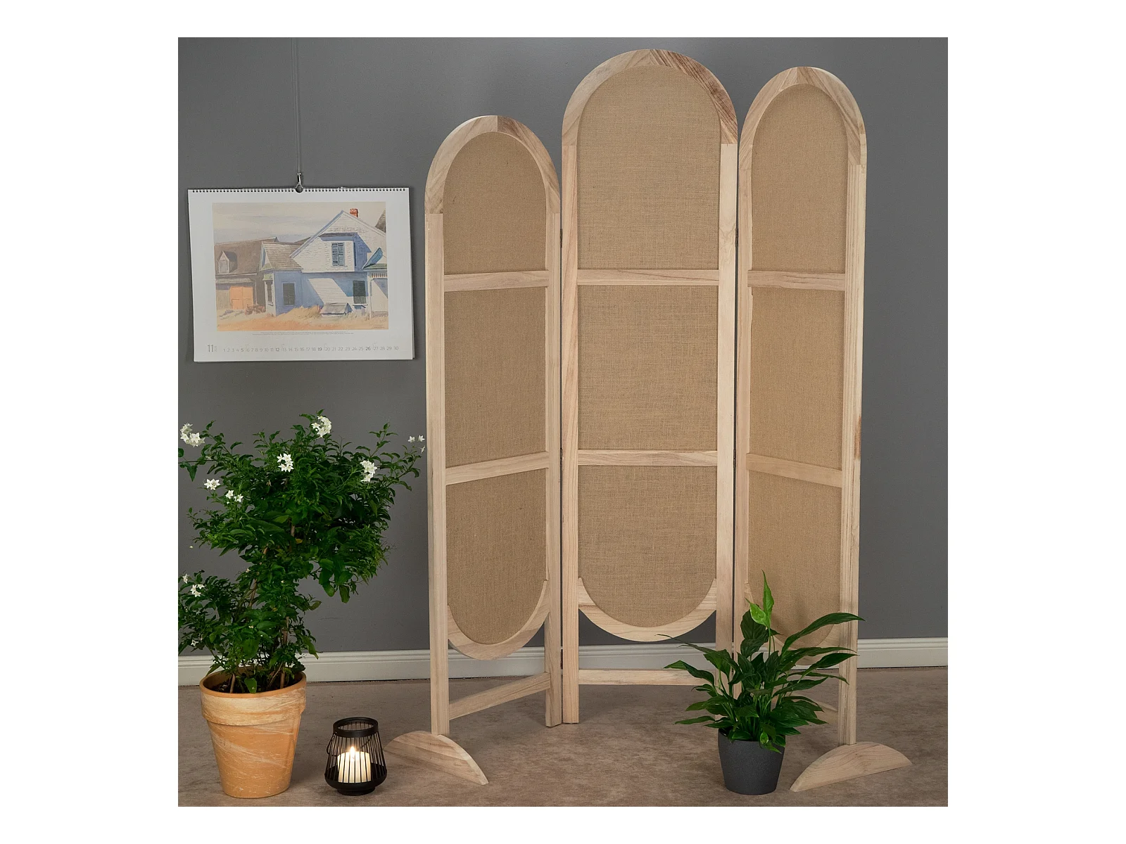 PARAVENT Arco 3 pièces. Lin, bois braun-natur