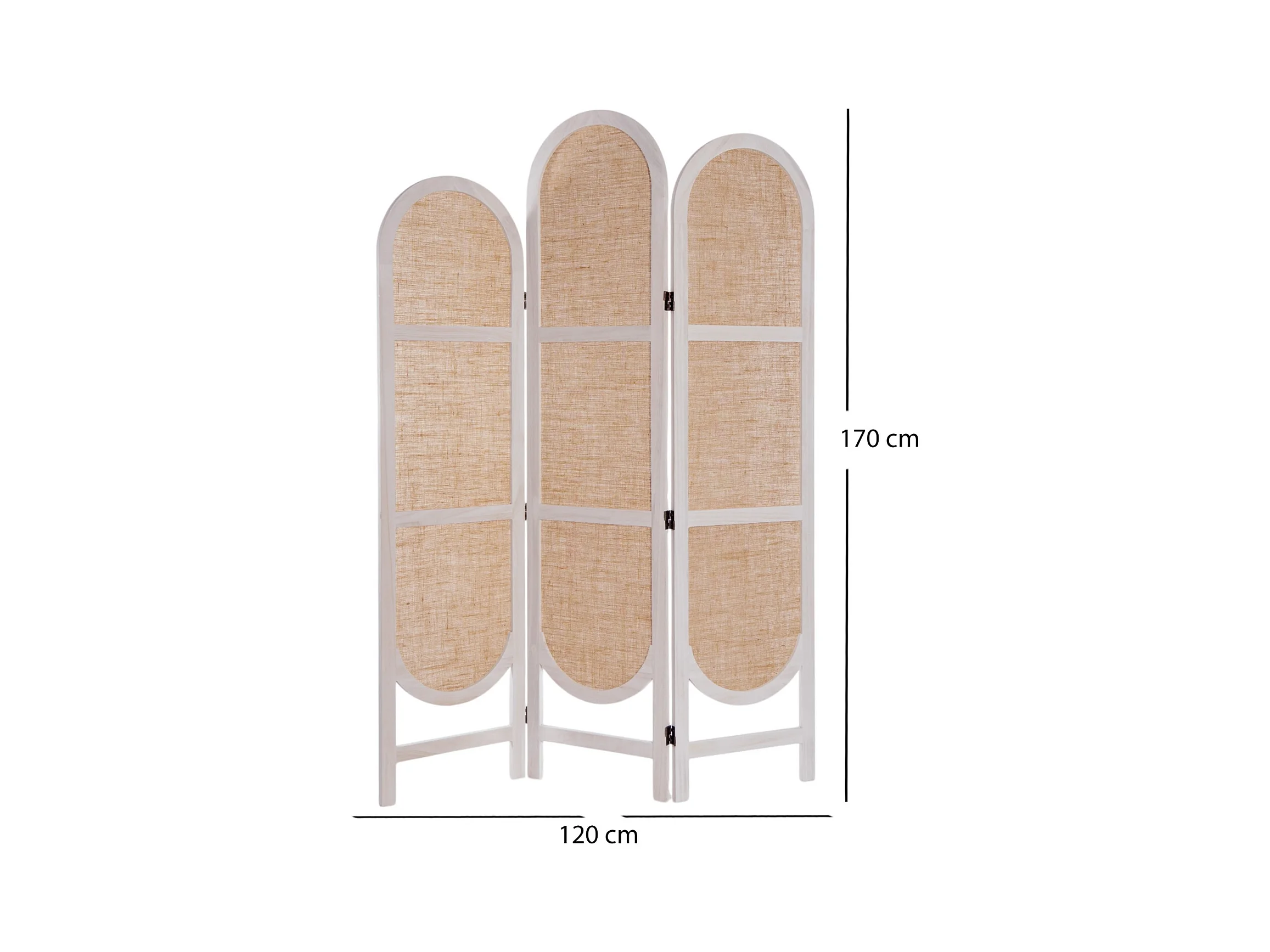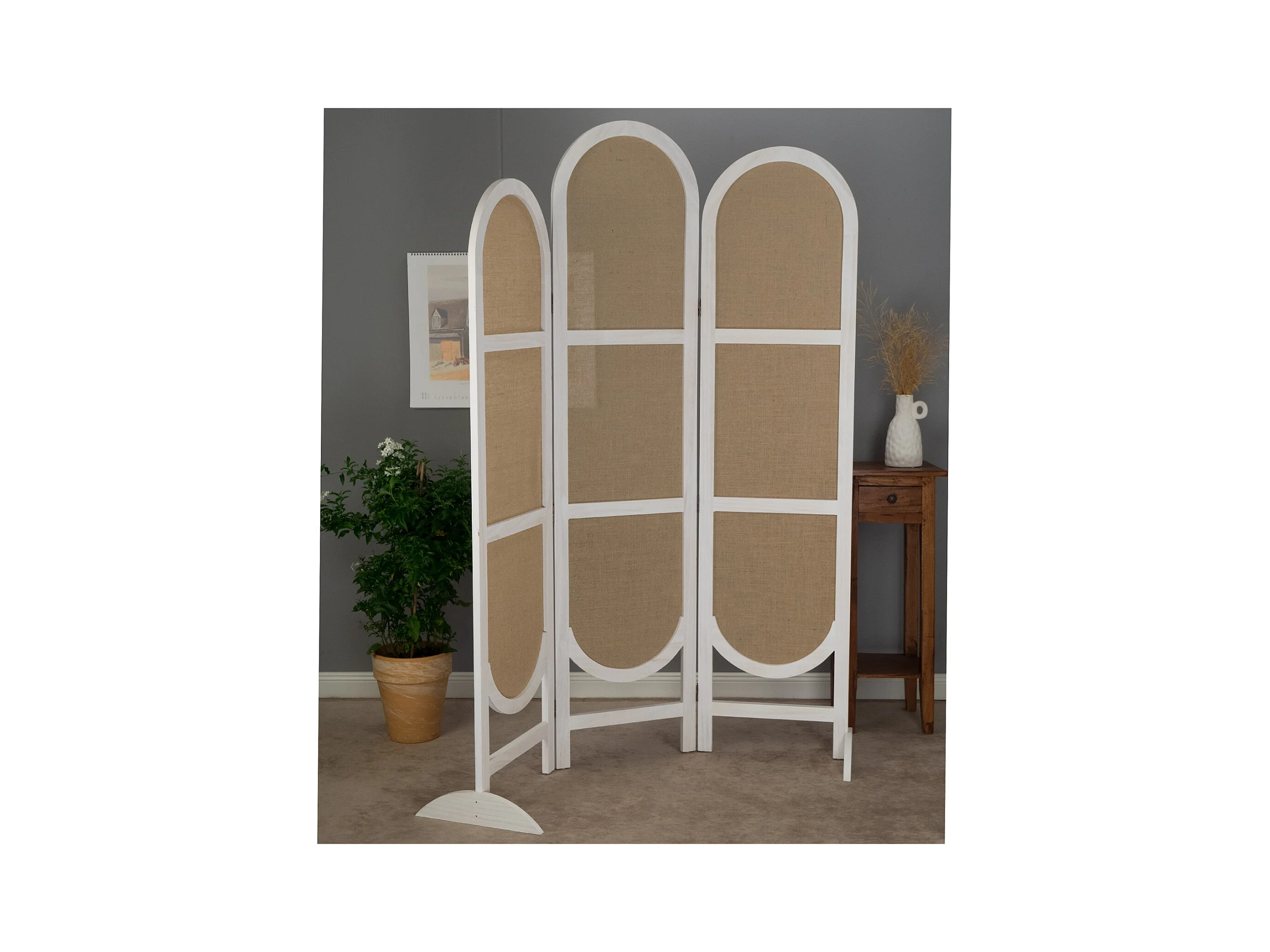 PARAVENT Arco 3 pièces. Lin, bois weiß-natur