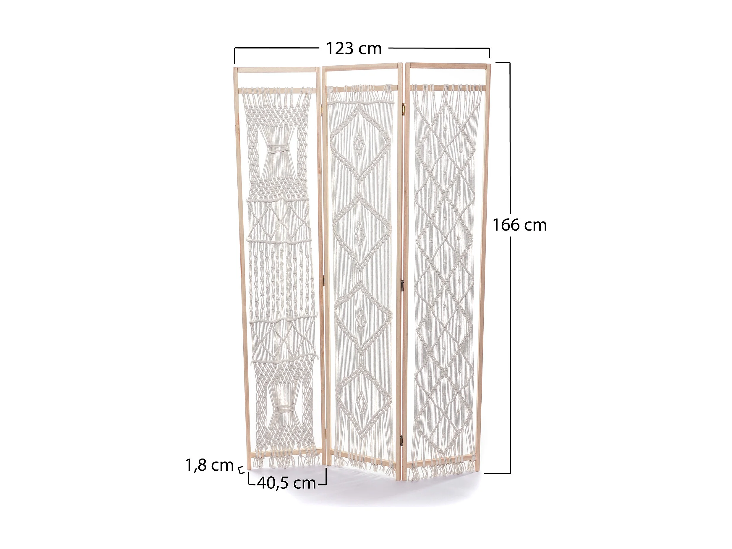 PARAVENT Boho 3 pièces. 166x123 cm, avec nouage en macramé couleurs naturelles