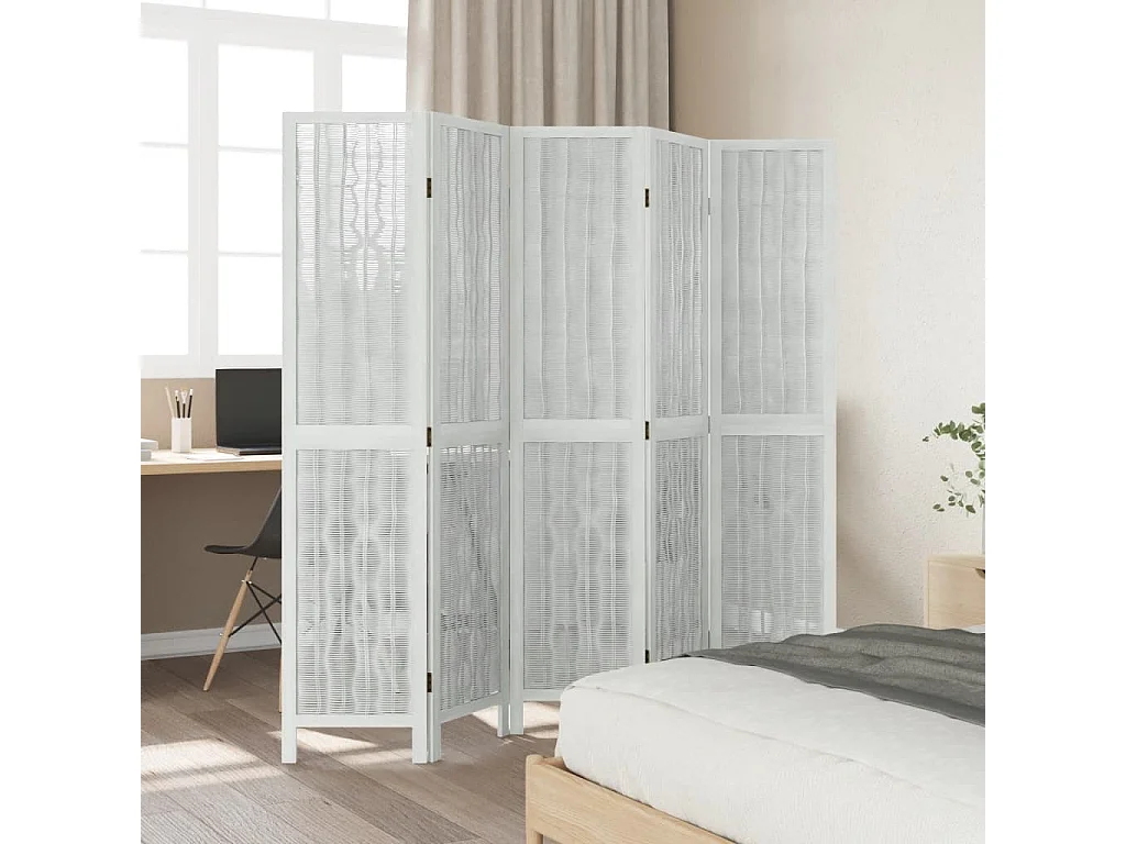 Paravent - Cloison de séparation 5 panneaux blanc bois de paulownia massif FR50057