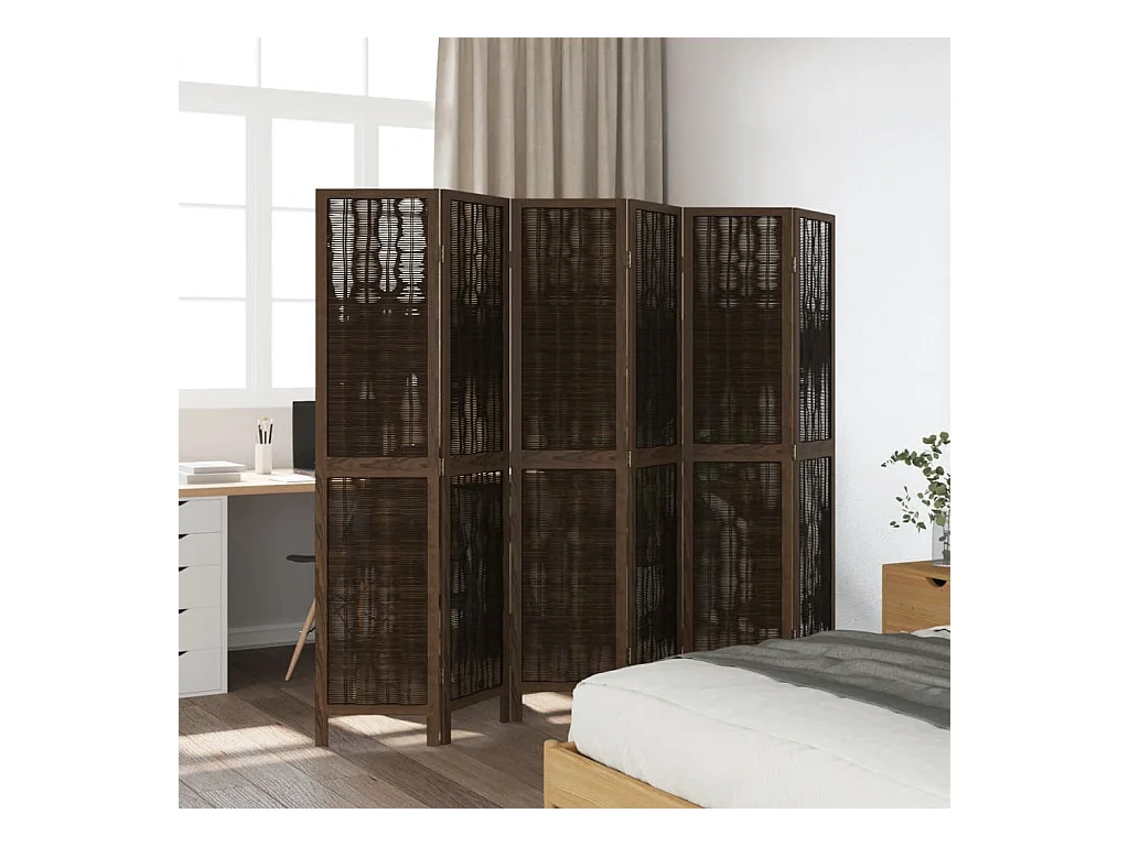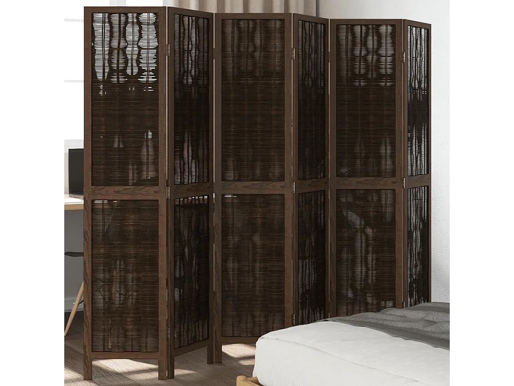 Paravent - Cloison de séparation 6 panneaux marron foncé paulownia massif FR35465