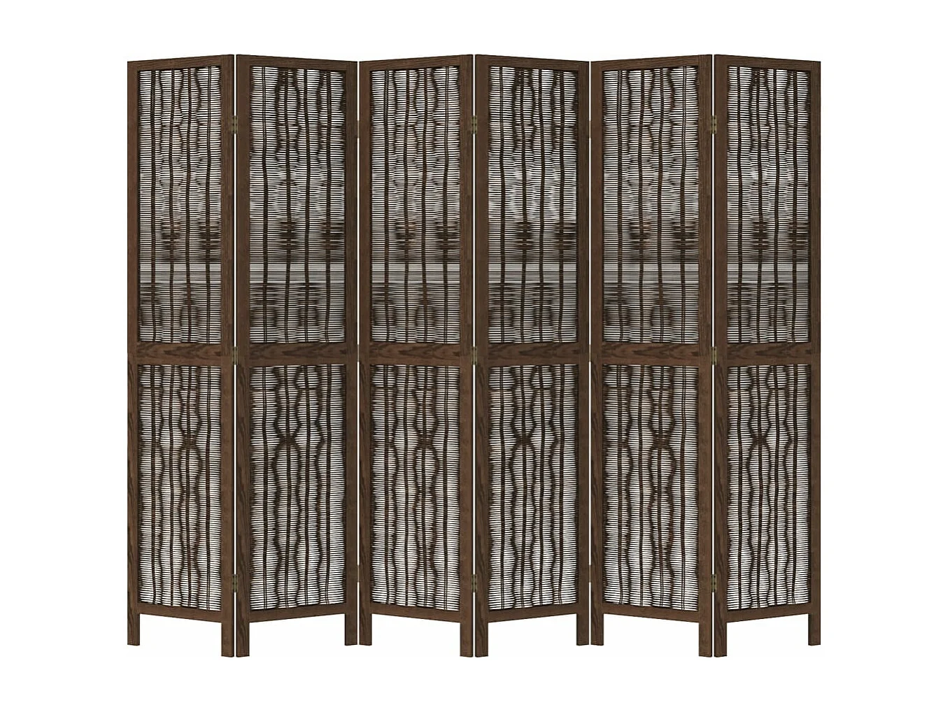 Paravent - Cloison de séparation 6 panneaux marron bois paulownia massif FR22267