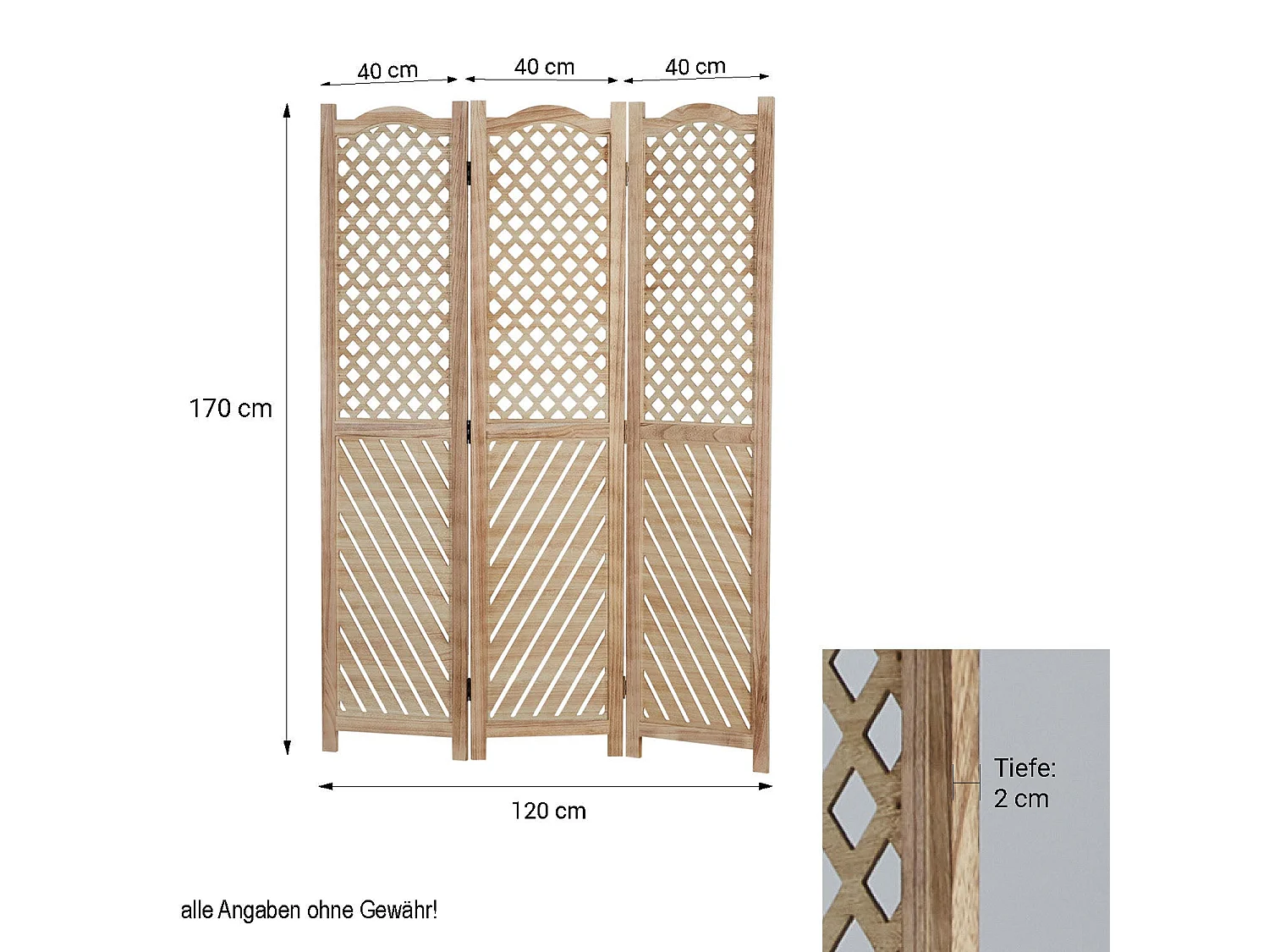 Paravent 3 panneaux en bois marron 120 x 1.7 x 170 cm PAR06086
