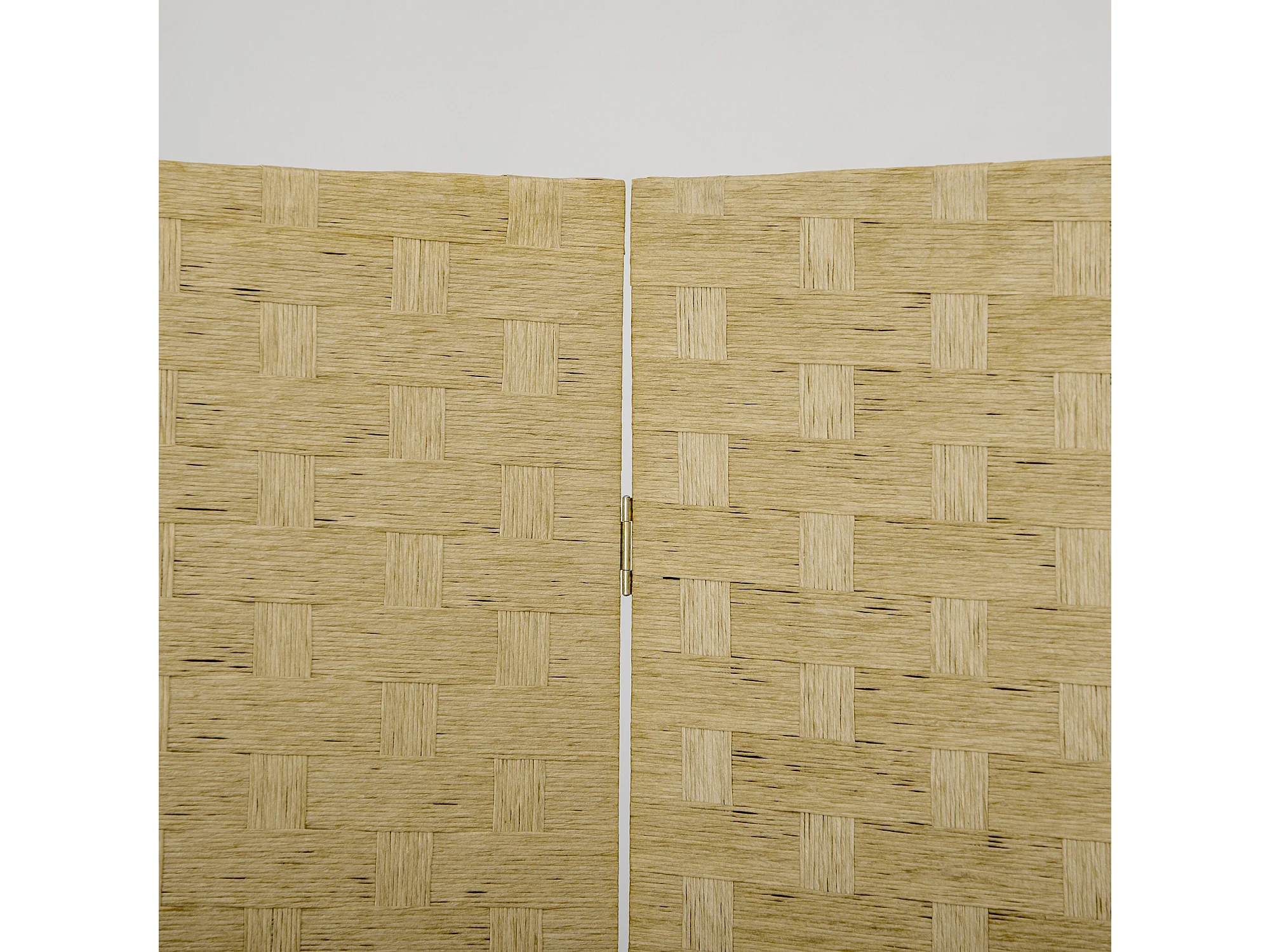 Paravent intérieur 4 panneaux pliables séparateur de pièce bois de pin fibres de papier tressé naturel