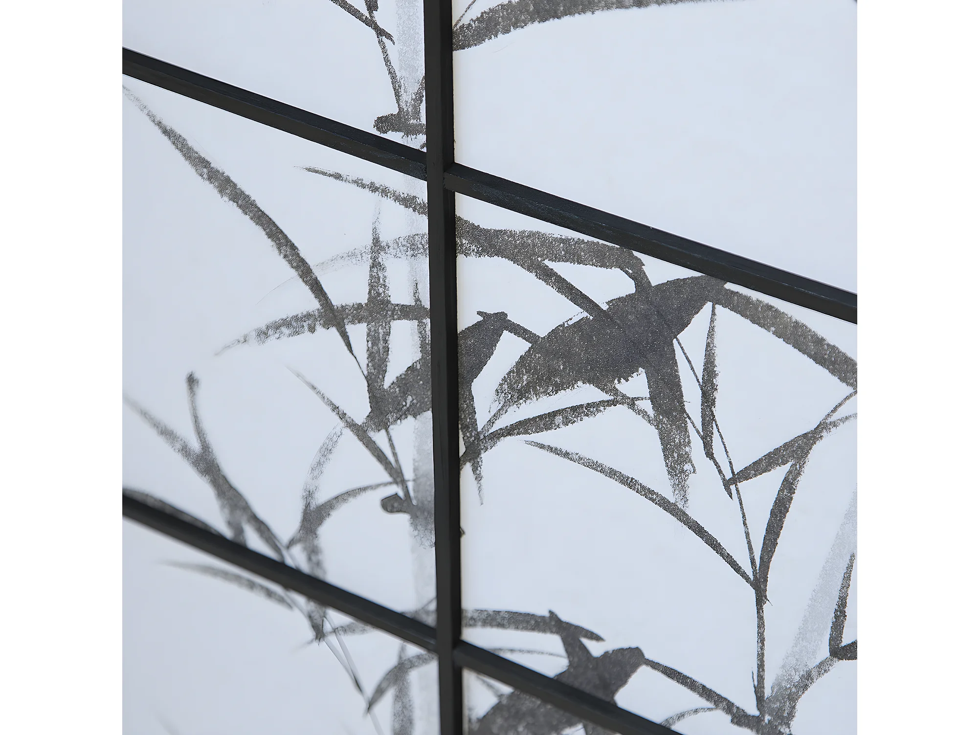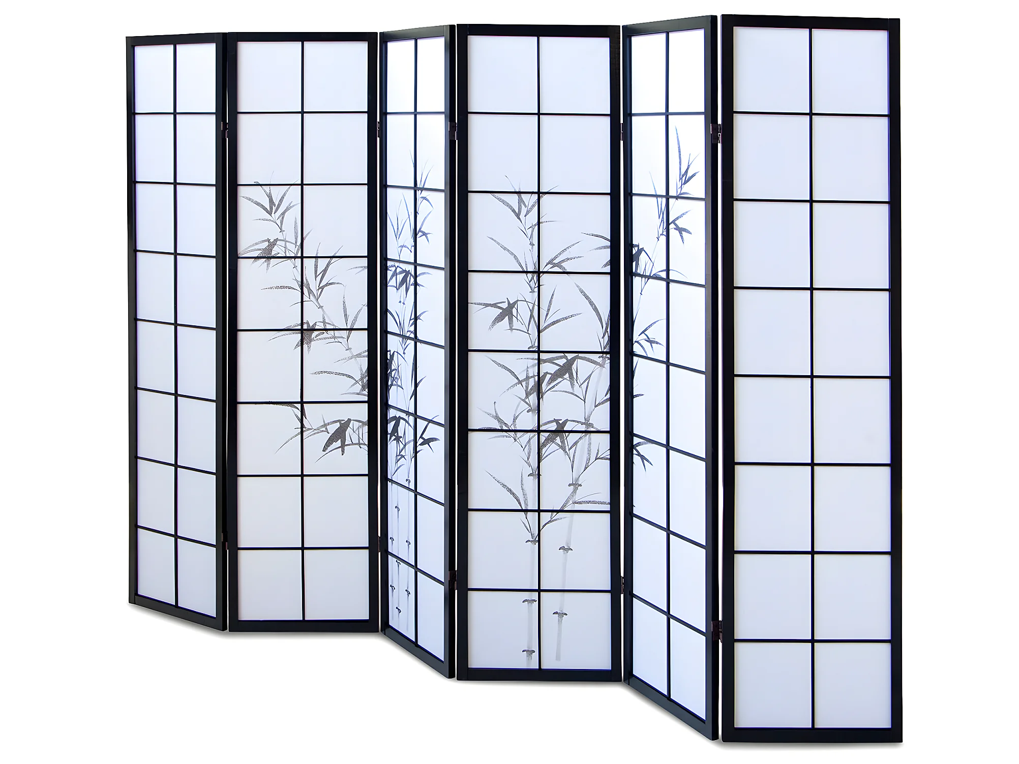 Paravent japonais en bois noir avec dessin bambou de 6 pans