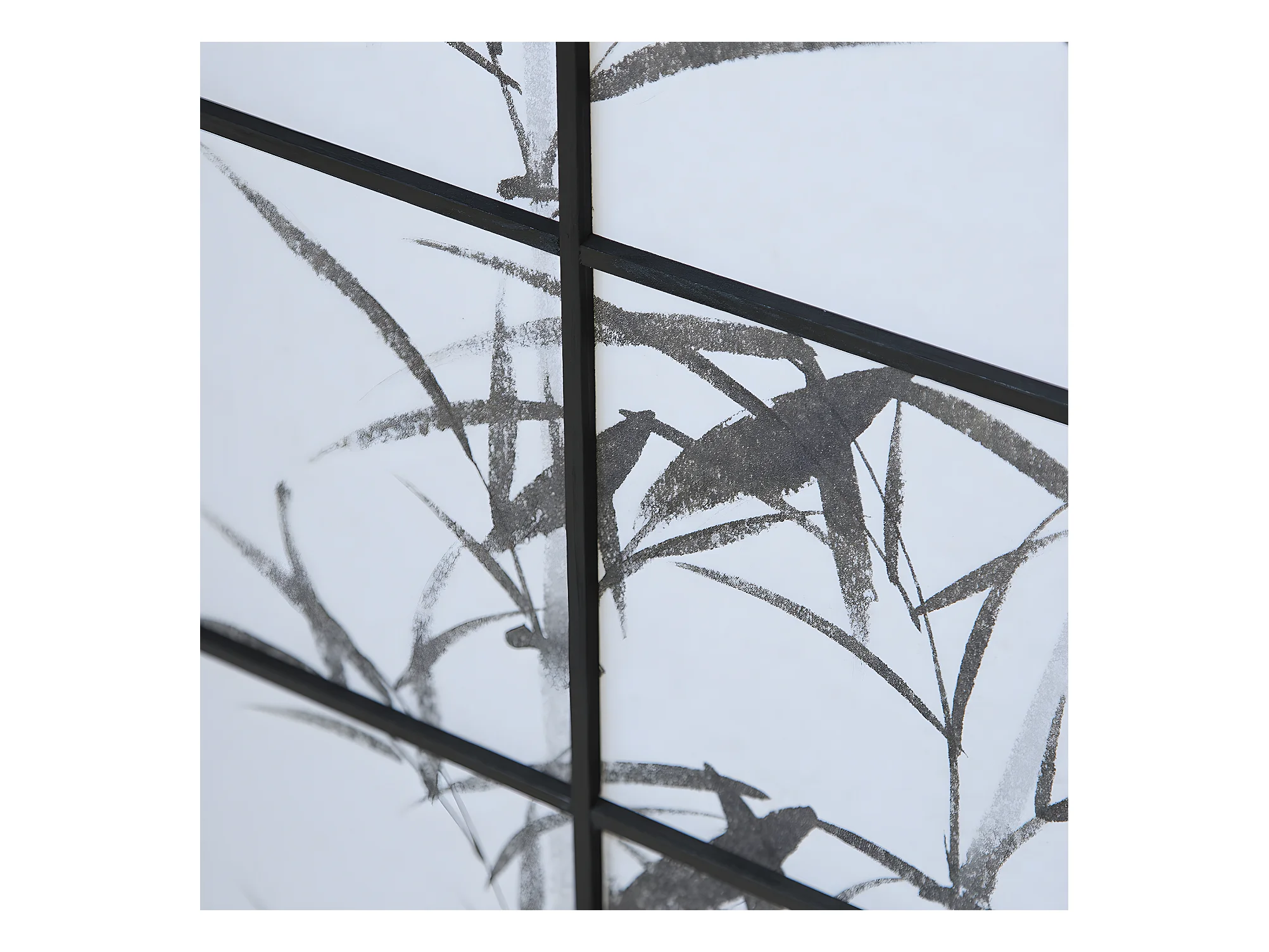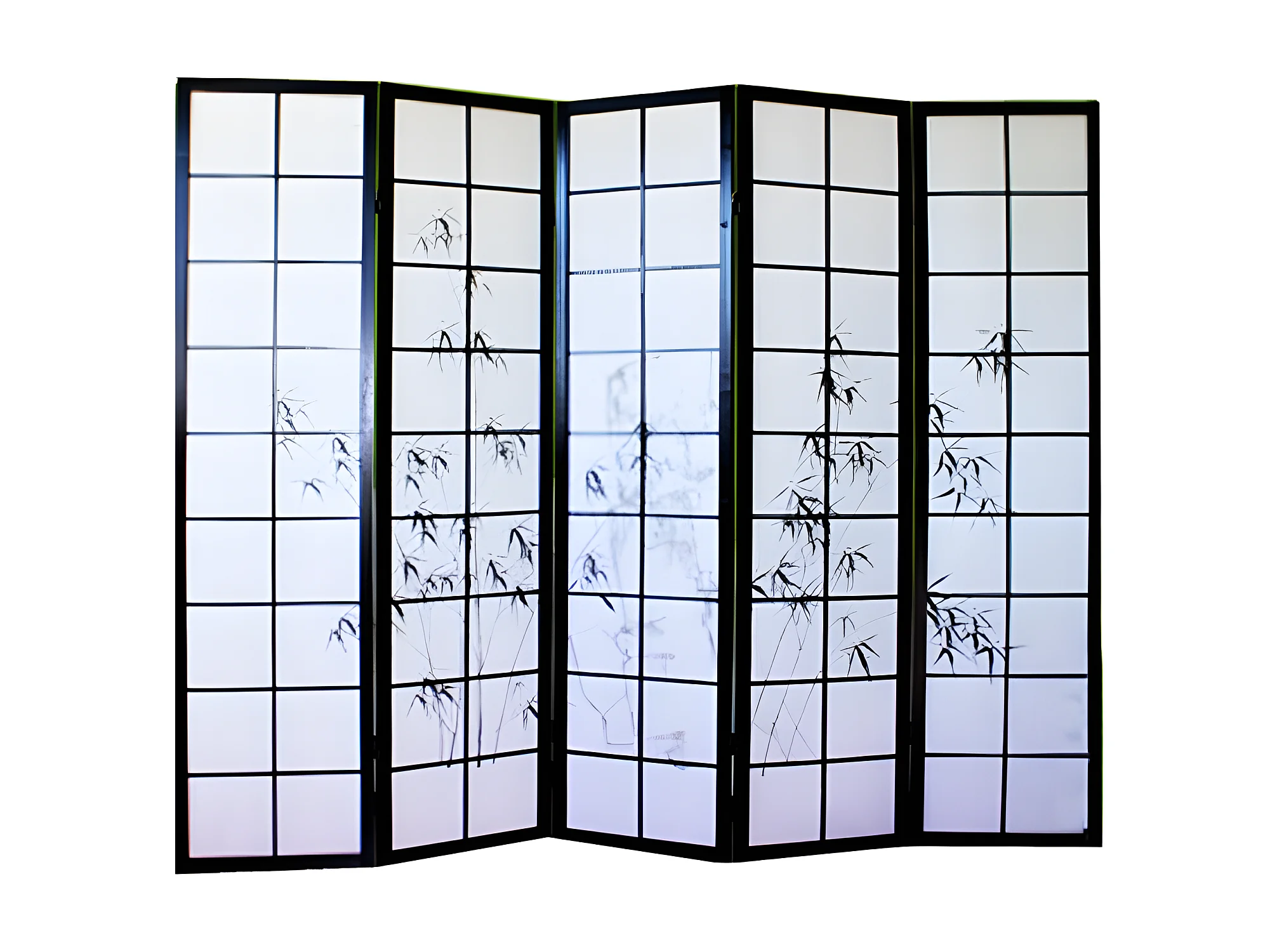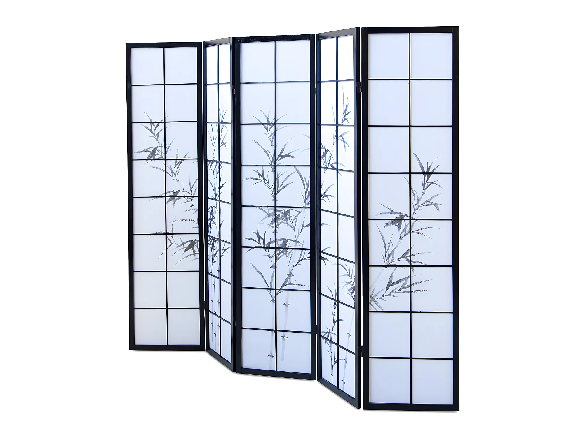 Paravent japonais en bois noir dessin bambou de 5 pans