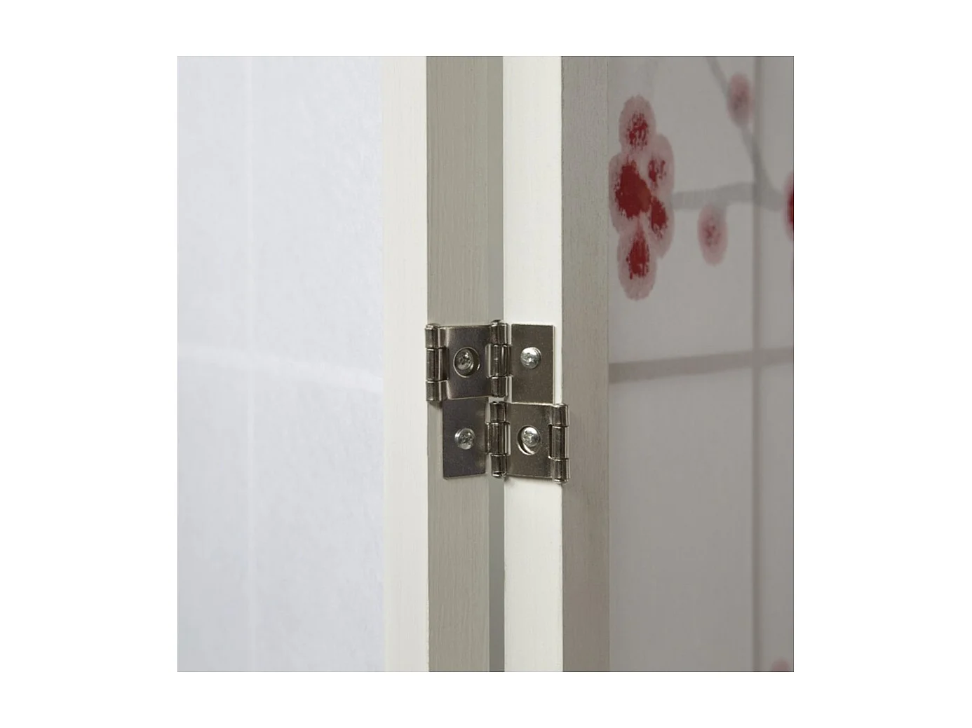 Paravent japonais fleur de cerisier en bois blanc de 4 pans, L176 x H175 x P2 cm