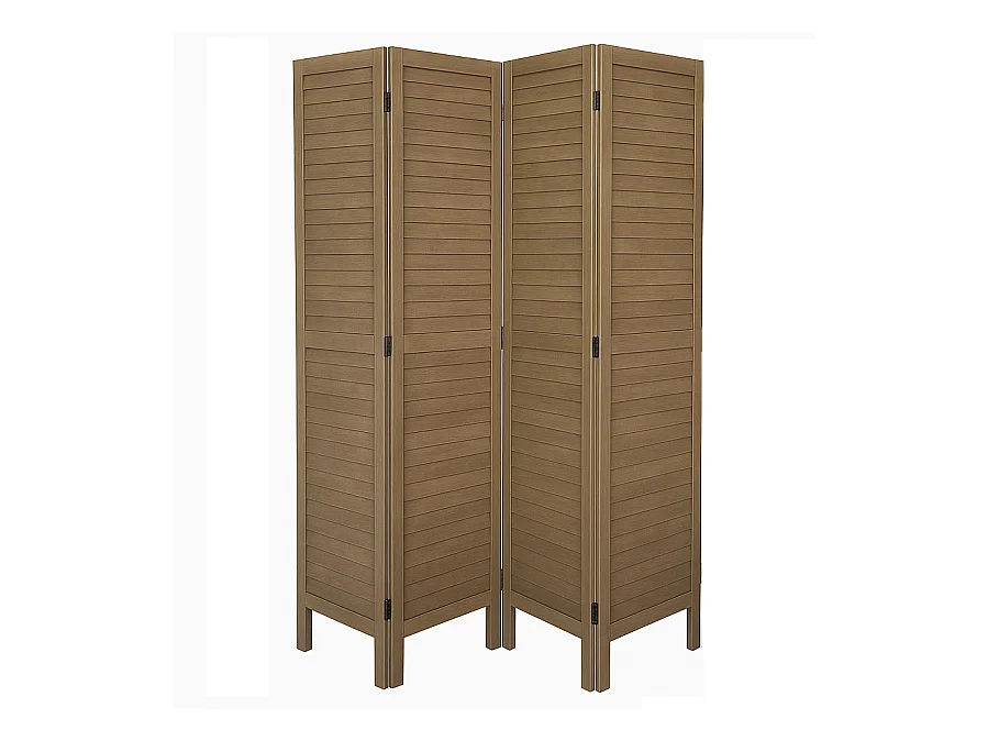 Paravent persienne de 4 pans en bois, coloris brun - Dim : H170 x L160cm
