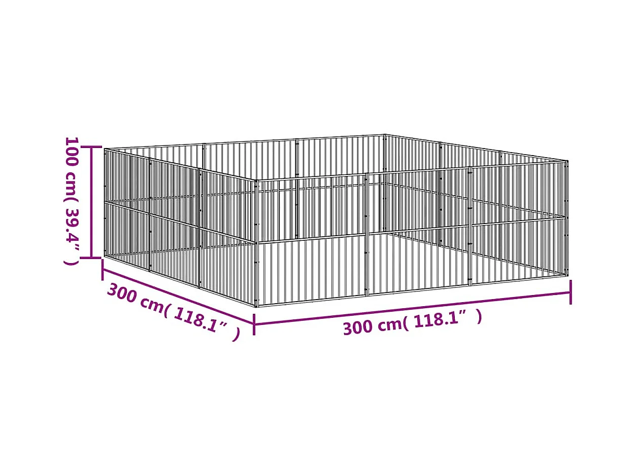 Parc pour chien 12 noire 300 x 300 x 100 cm 02_0043606