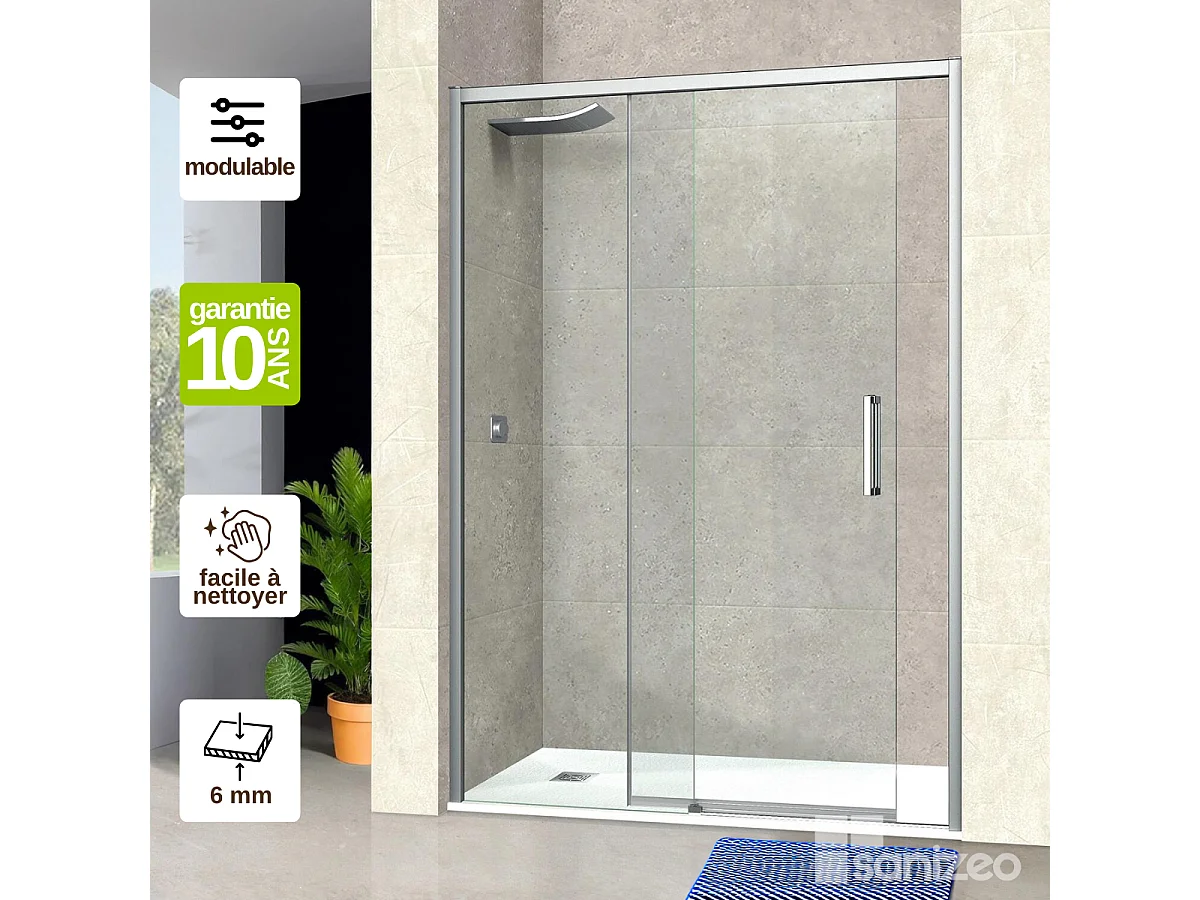 Pare douche porte coulissante DROITE en verre ép 6mm L96/100*H195 cm, profilé chrome, SUPERBAN Vézannes 2P