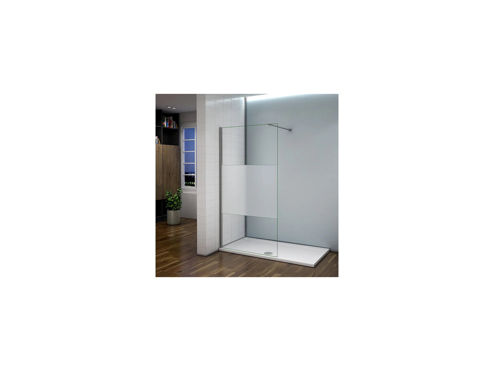 Paroi de douche à l'italienne 120x200cm avec barre de fixation 90cm recoupable, en 8mm verre bande centrale dépolie