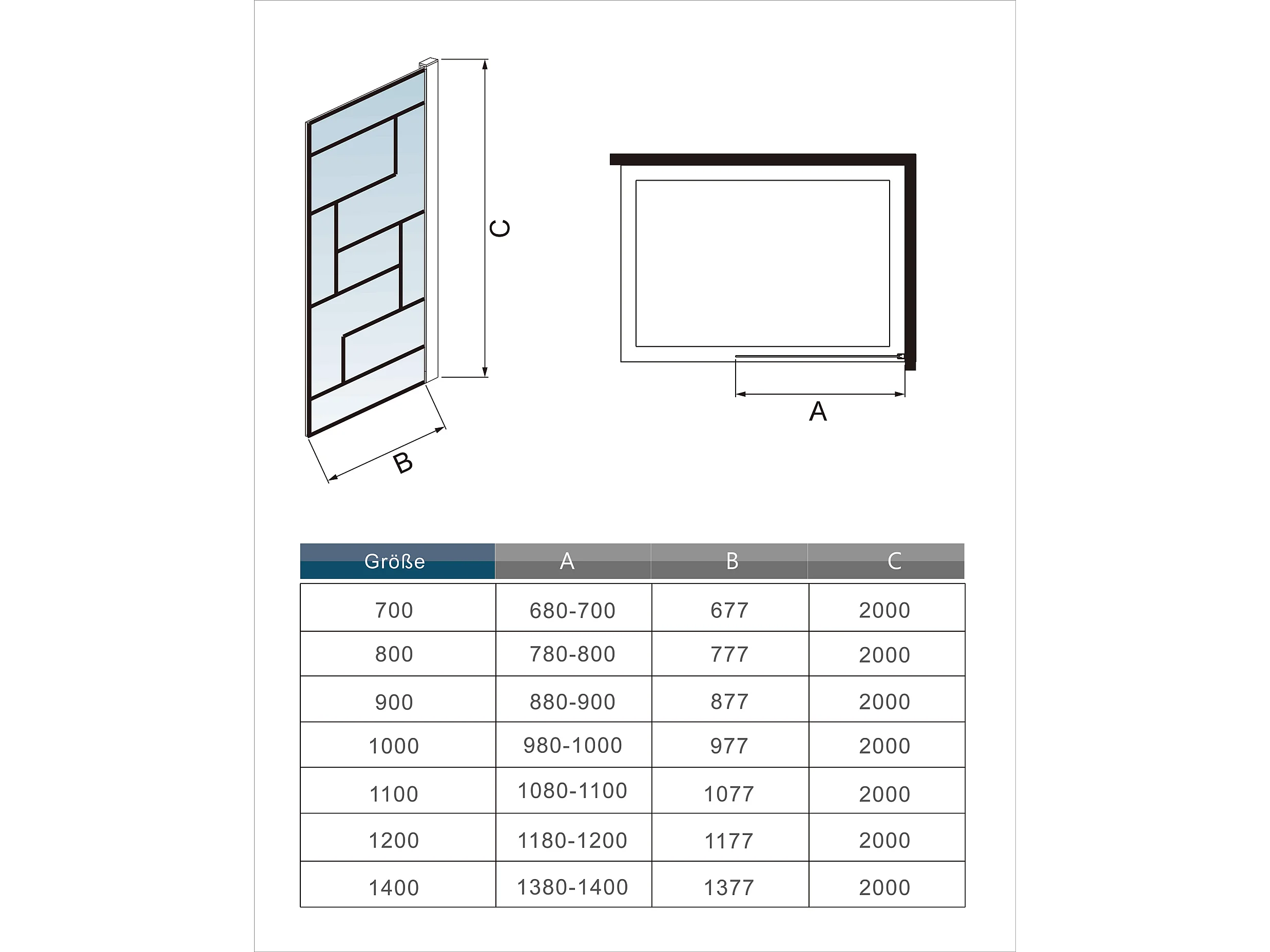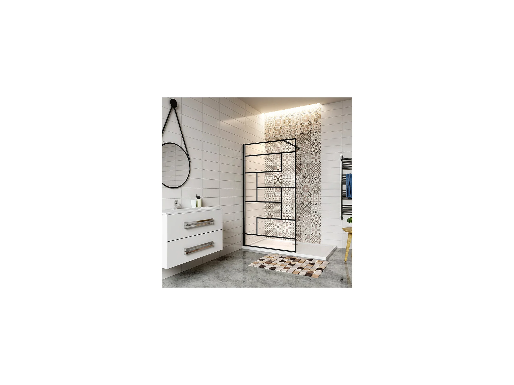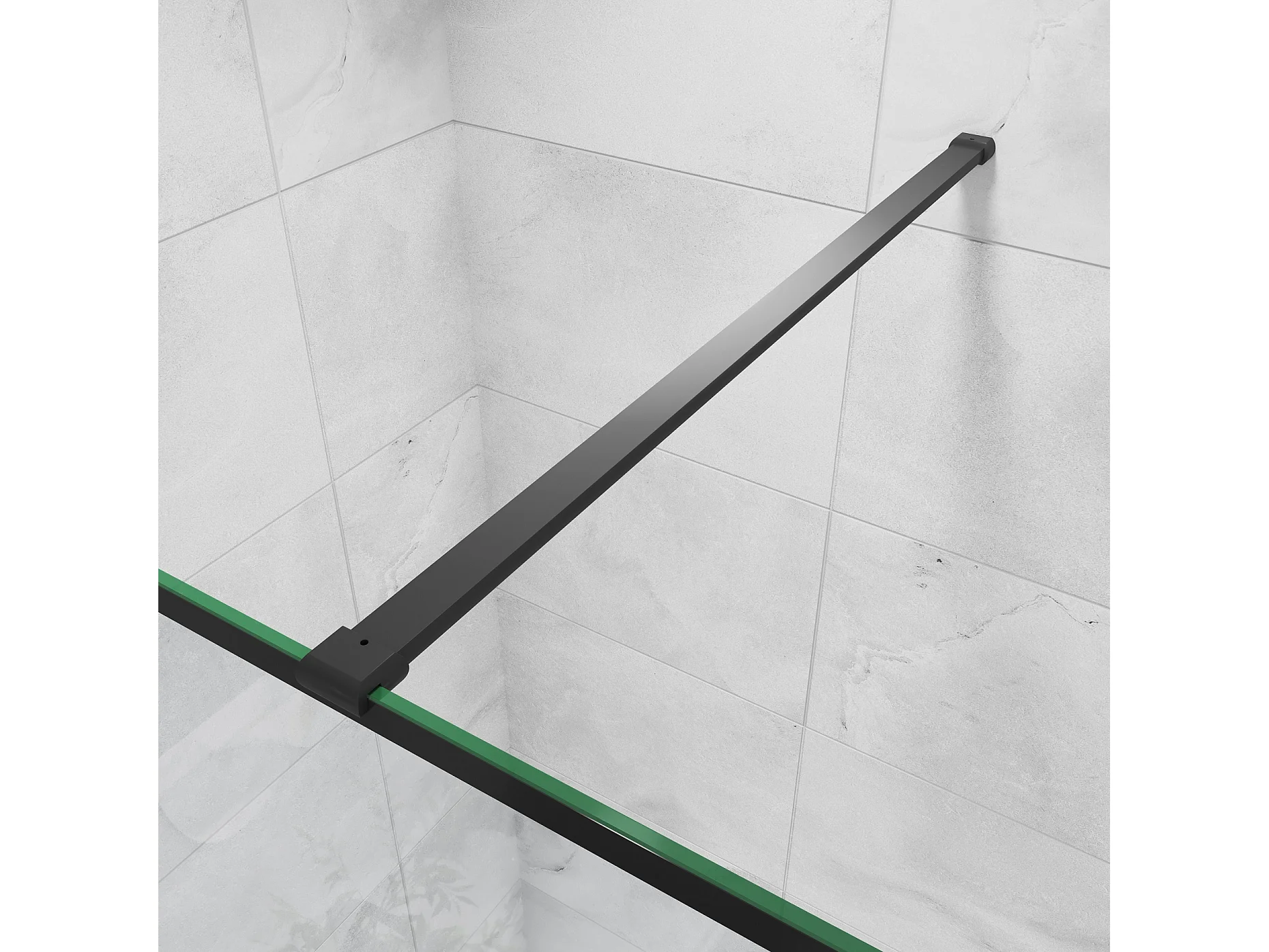 Paroi de douche 140x200cm fixe à l'italienne avec barre de fixation noire 90cm, en 8mm verre anticalcaire style moderne