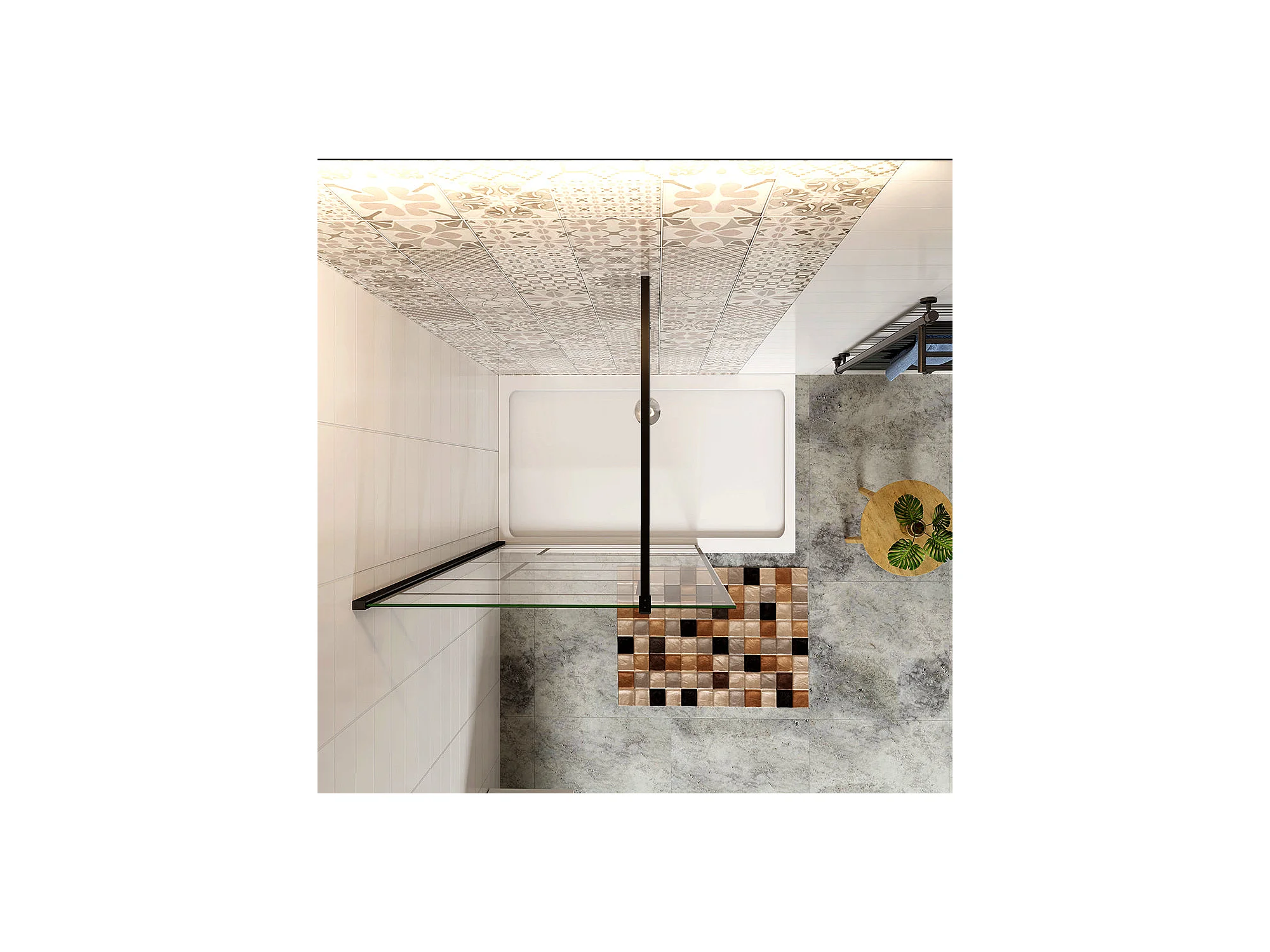 Paroi de douche 140x200cm fixe à l'italienne avec barre de fixation noire carrée 140cm, en 8mm verre anticalcaire style moderne