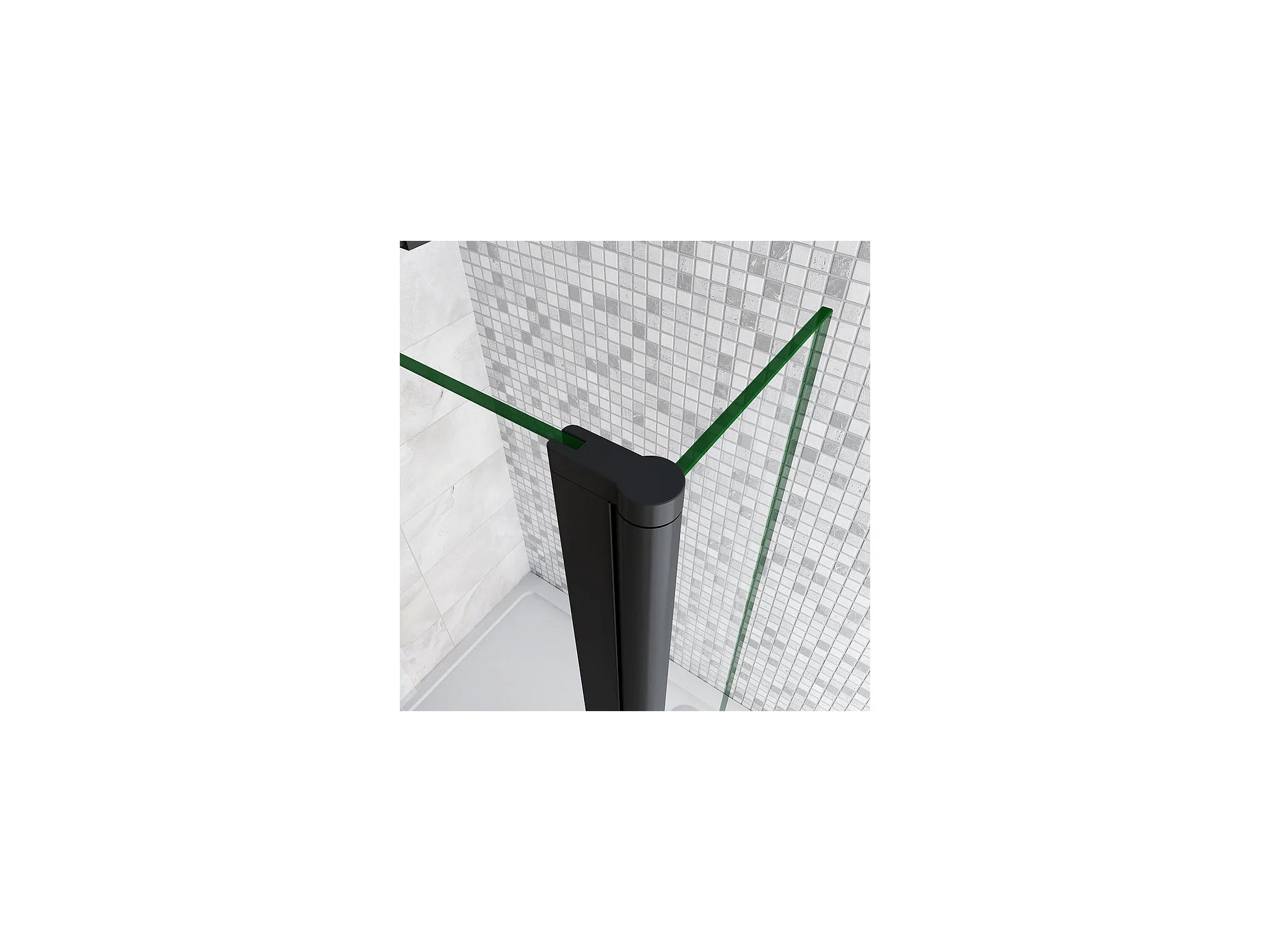 Paroi de douche à l'italienne avec retour pivotant 150+30x200cm avec barre de fixation 140cm recoupable - Noir Mat - 8mm verre anticalcaire