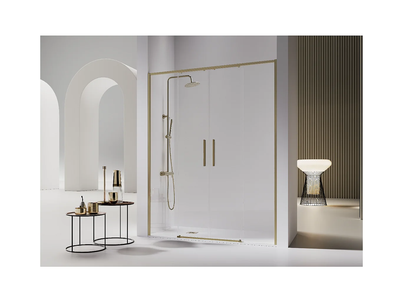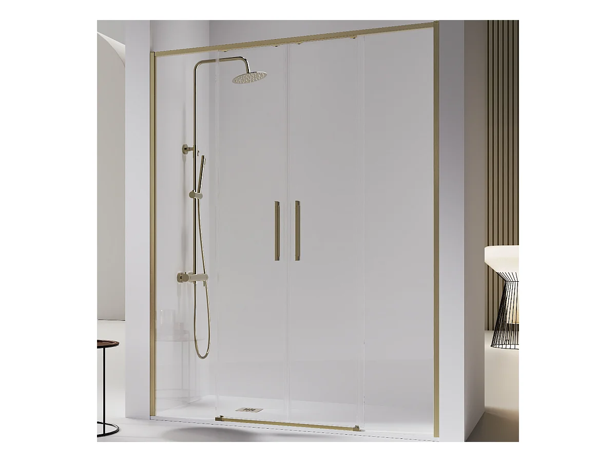 Paroi de douche 2 verres fixes + 2 portes coulissantes DELTA or brossé 136-138.6 cm