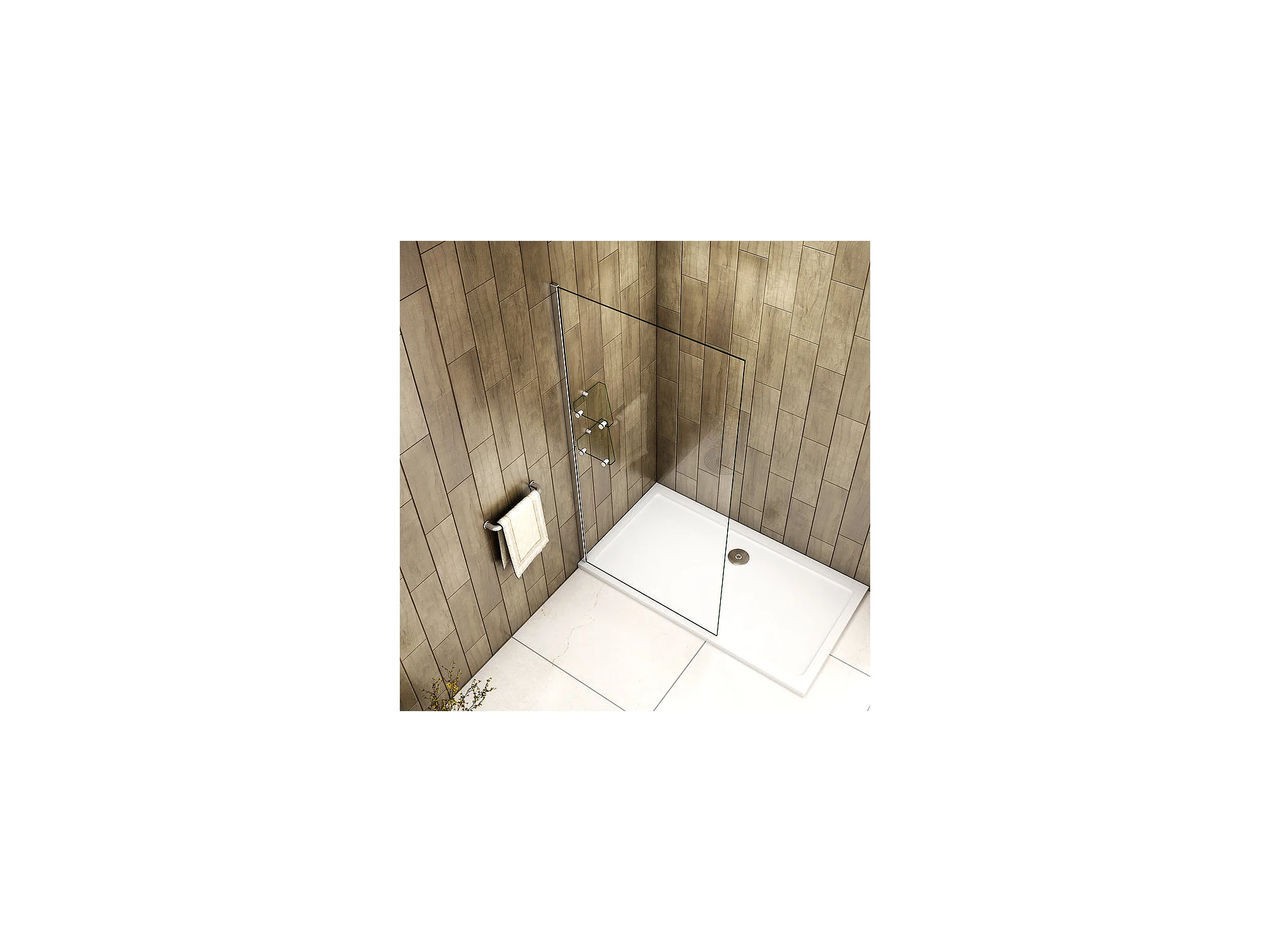 Paroi de douche fixe à l'italienne 70cm Hauteur 190cm avec 2 étagères - Verre en trempé transparent