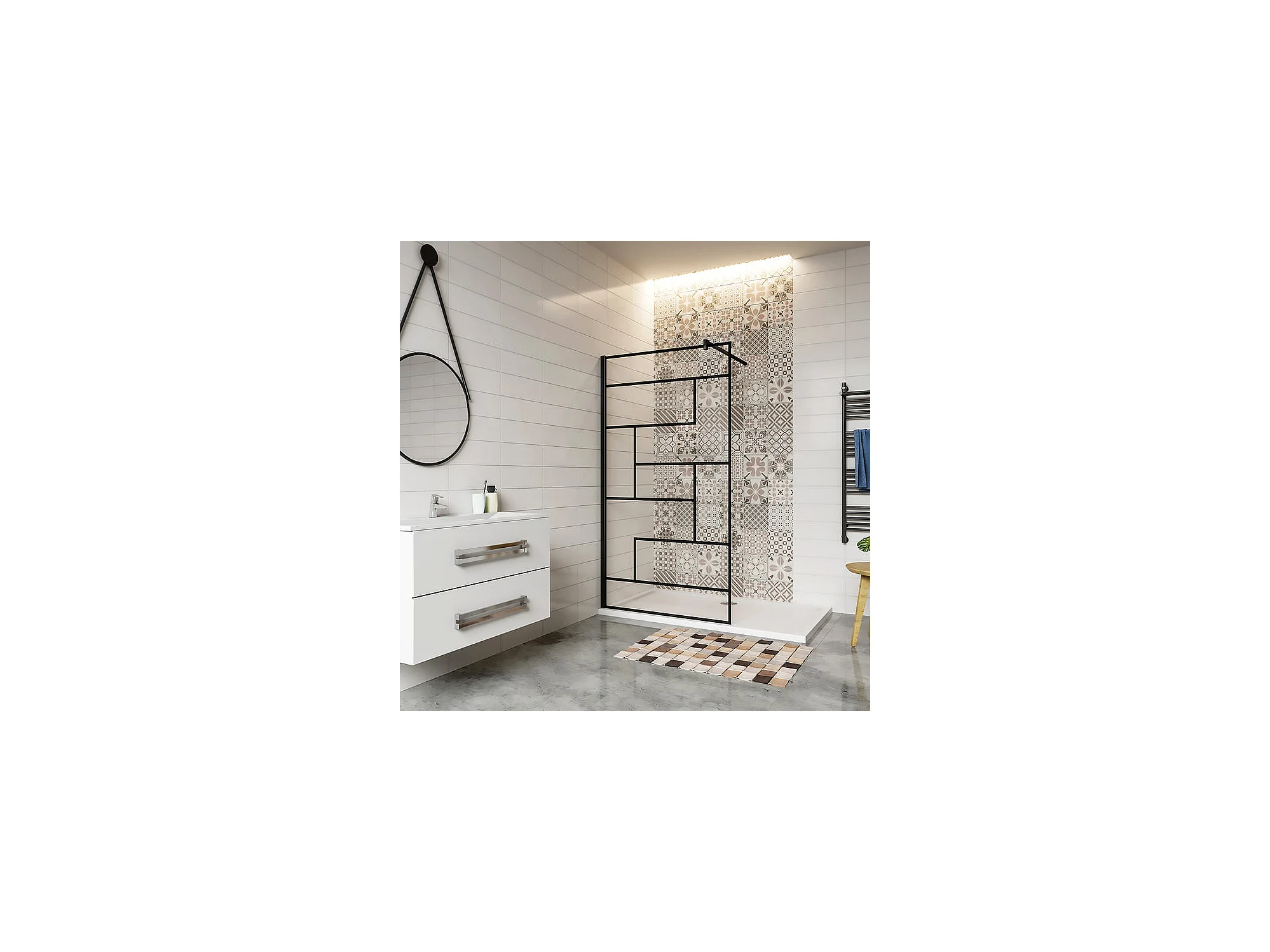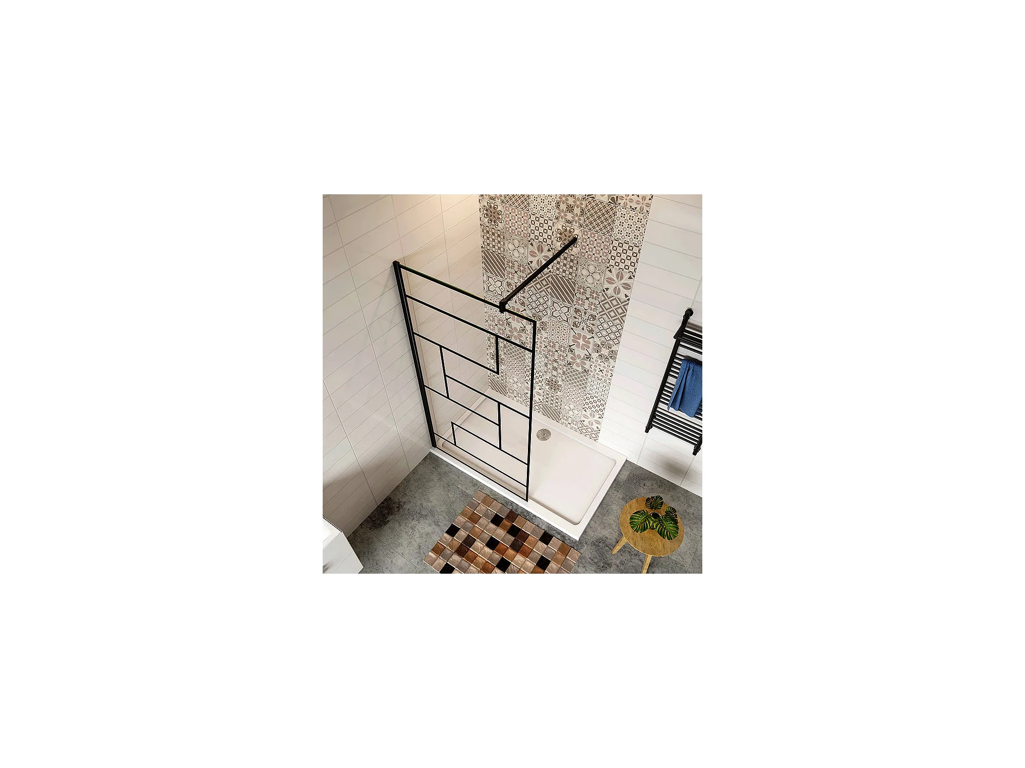 Paroi de douche 80x200cm fixe à l'italienne avec barre de fixation noire carrée 140cm, en 8mm verre anticalcaire style moderne