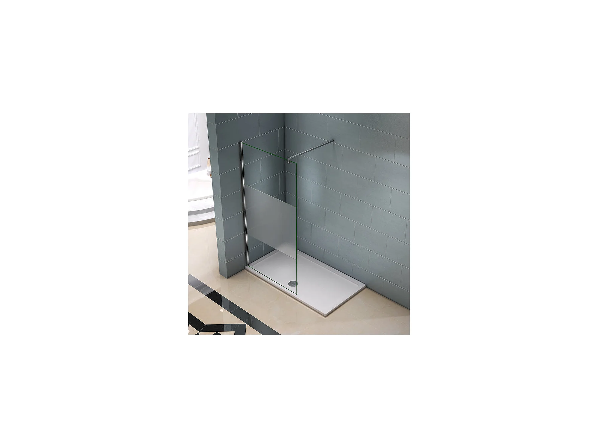Paroi de douche à l'italienne 90x200cm avec barre de fixation 140cm en carré, en 8mm verre bande centrale dépolie