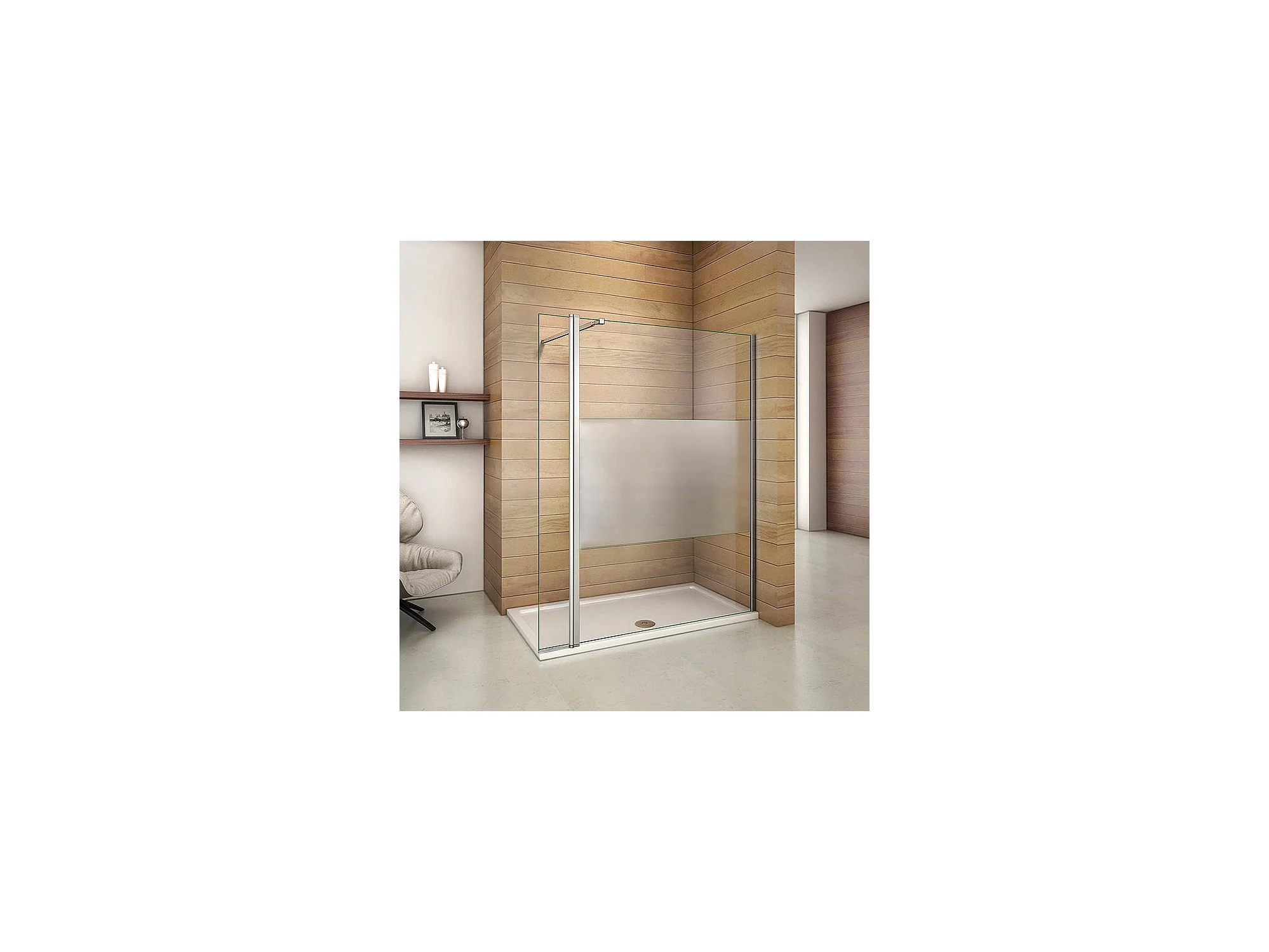 Paroi de douche à l'italienne verre dépoli au centre 110+40x200cm avec retour pivotant, avec barre de fixation 73-120cm