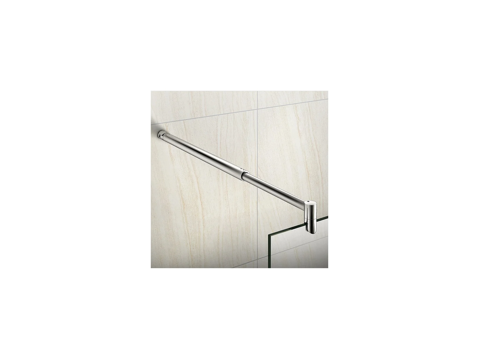 Paroi de douche à l'italienne verre dépoli au centre 140+30x200cm avec retour pivotant, avec barre de fixation 70-120cm en cylindrique