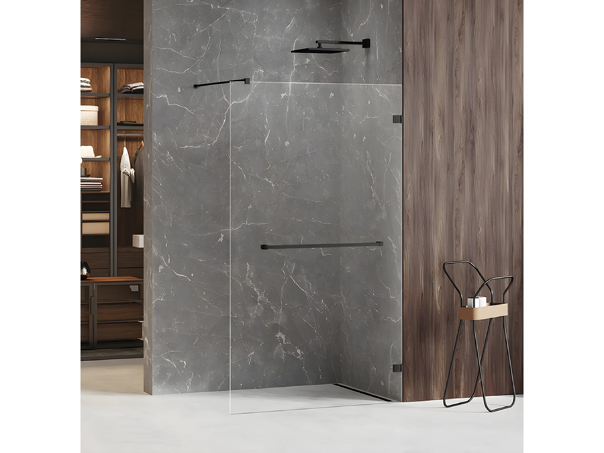 Paroi de douche à l'italienne noire avec porte serviette 140 cm BORA BORA BLACK