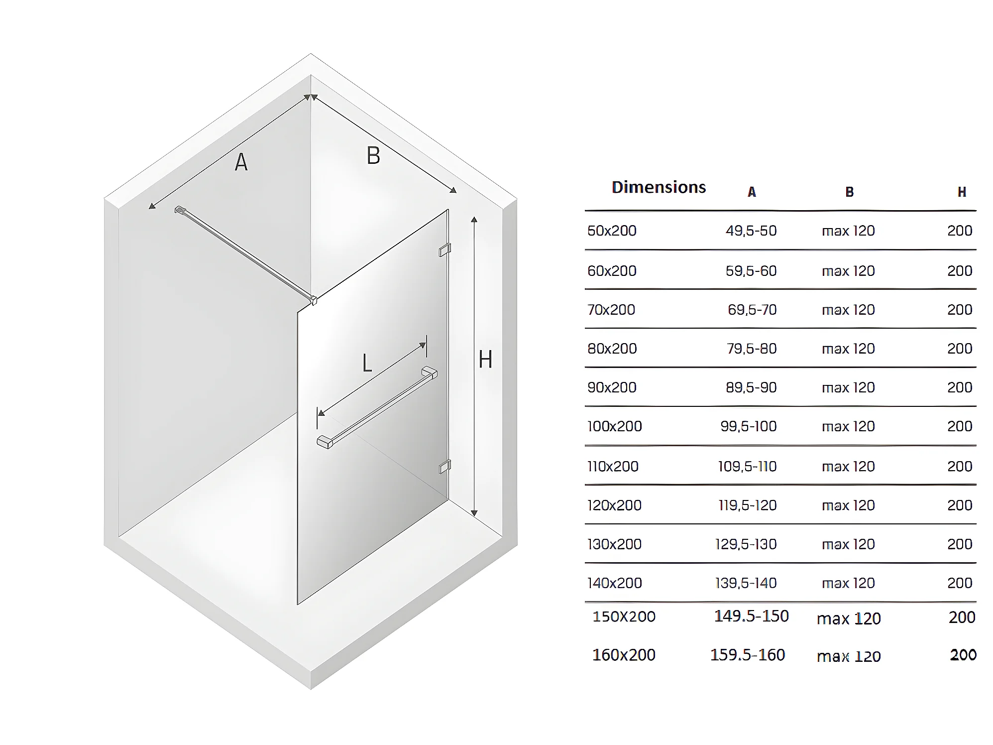 Paroi de douche à l'italienne noire avec porte serviette 80 cm BORA BORA BLACK