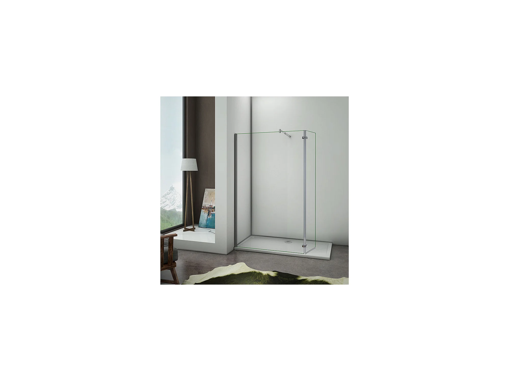 Paroi de douche fixe à l'italienne avec retour pivotant 120+40x200cm, charnières, avec barre de fixation cylindrique 70-120cm