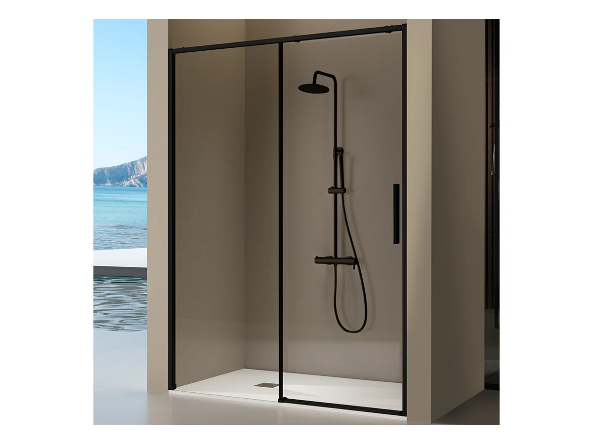 Paroi de douche fixe + porte coulissante DELTA noir mat 132-134.6 cm