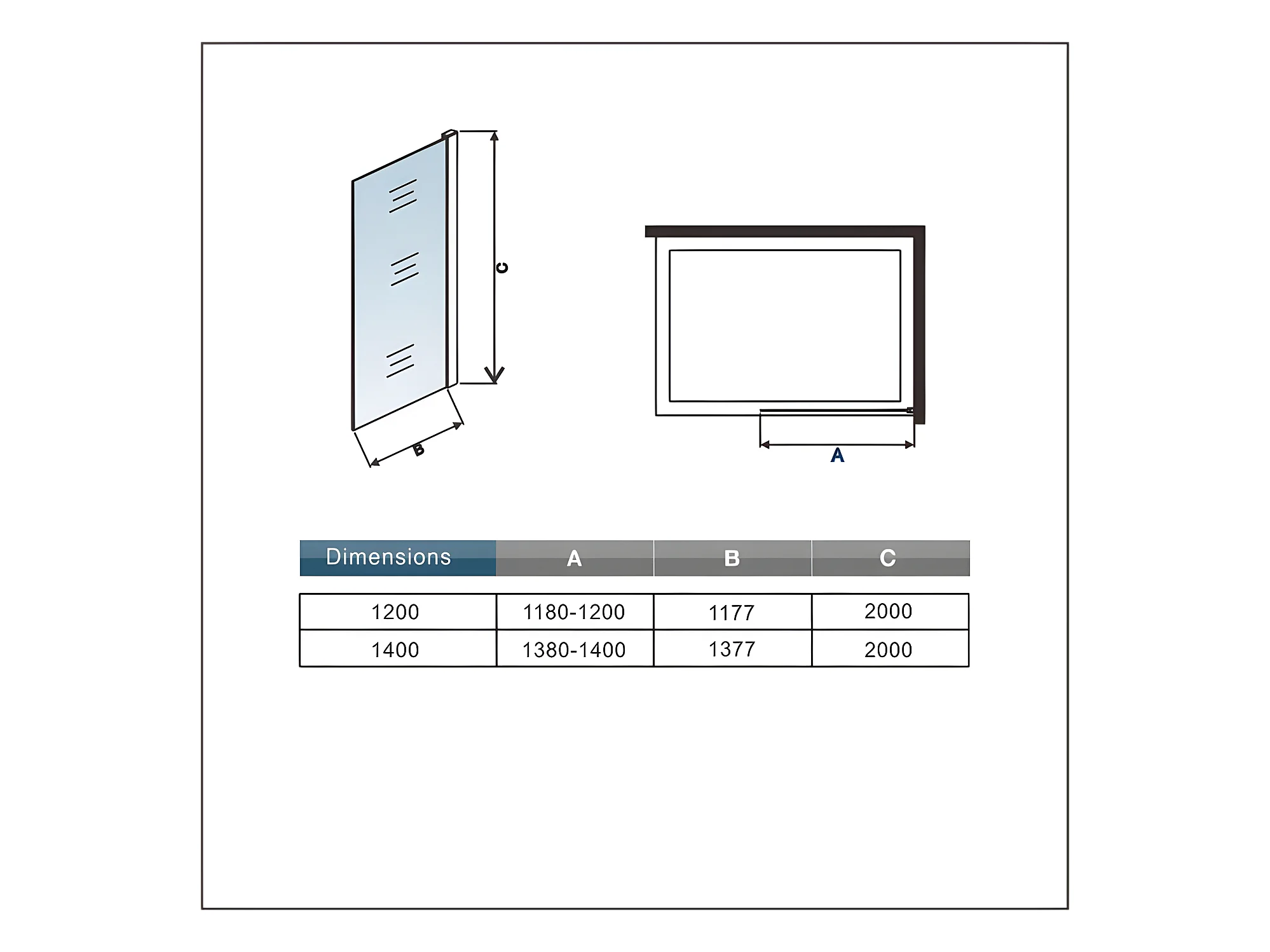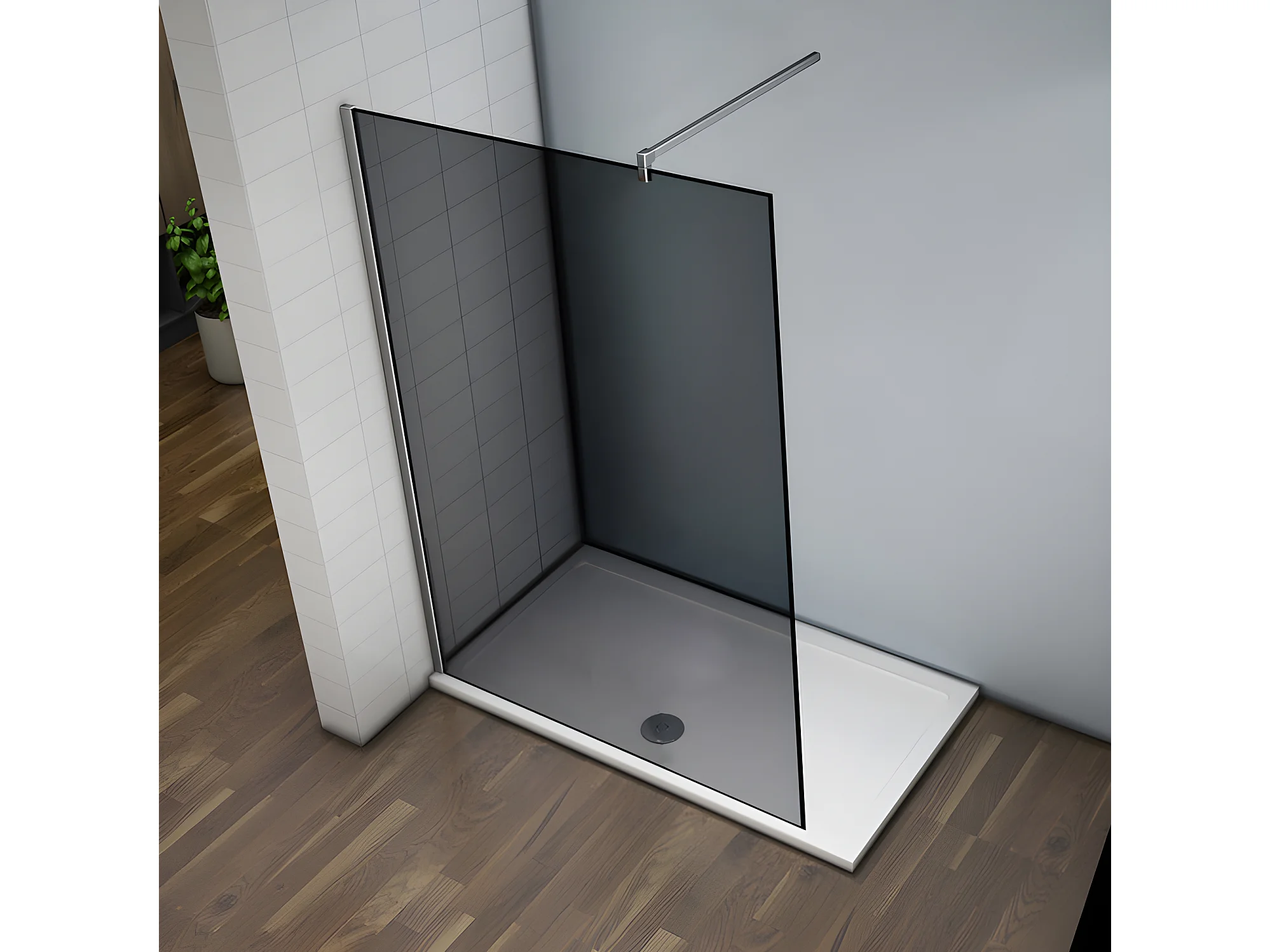 Paroi de douche grise 100x200cm à l'italienne avec barre de fixation 90cm en carré, en 8mm verre trempé anticalcaire