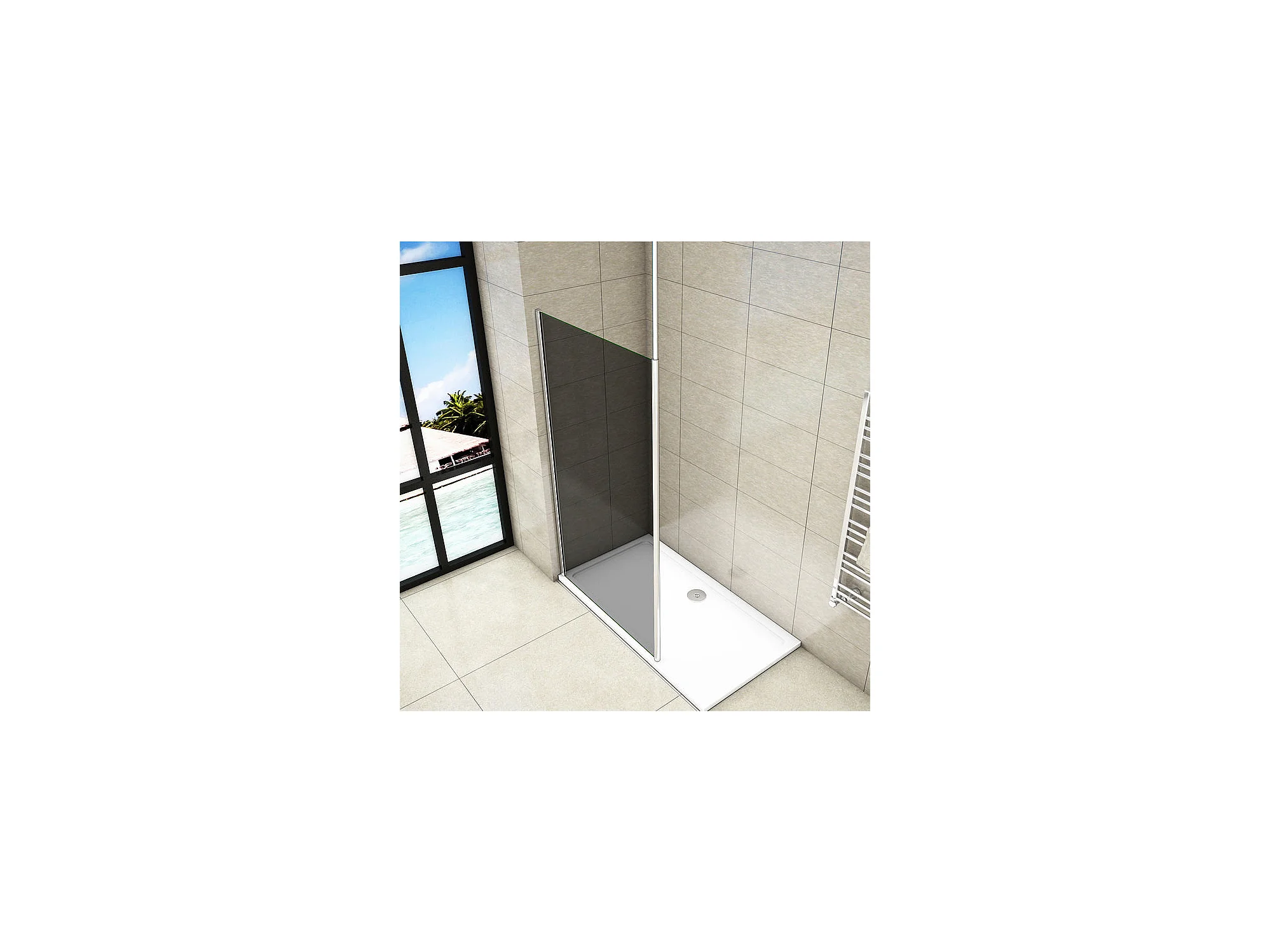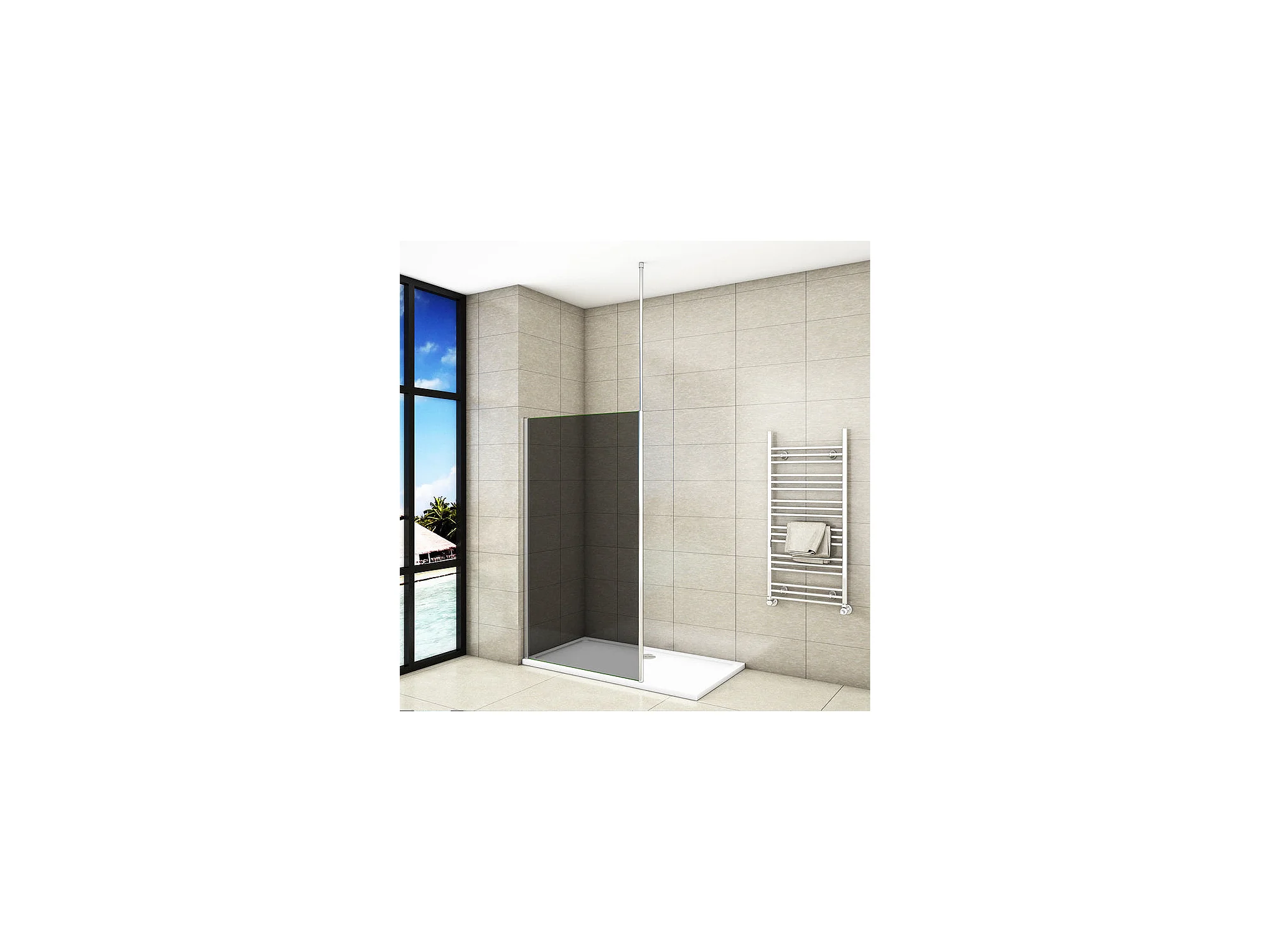 Paroi de douche grise 100x200cm à l'italienne avec barre de fixation au plafond 203-320cm, en 8mm verre trempé anticalcaire